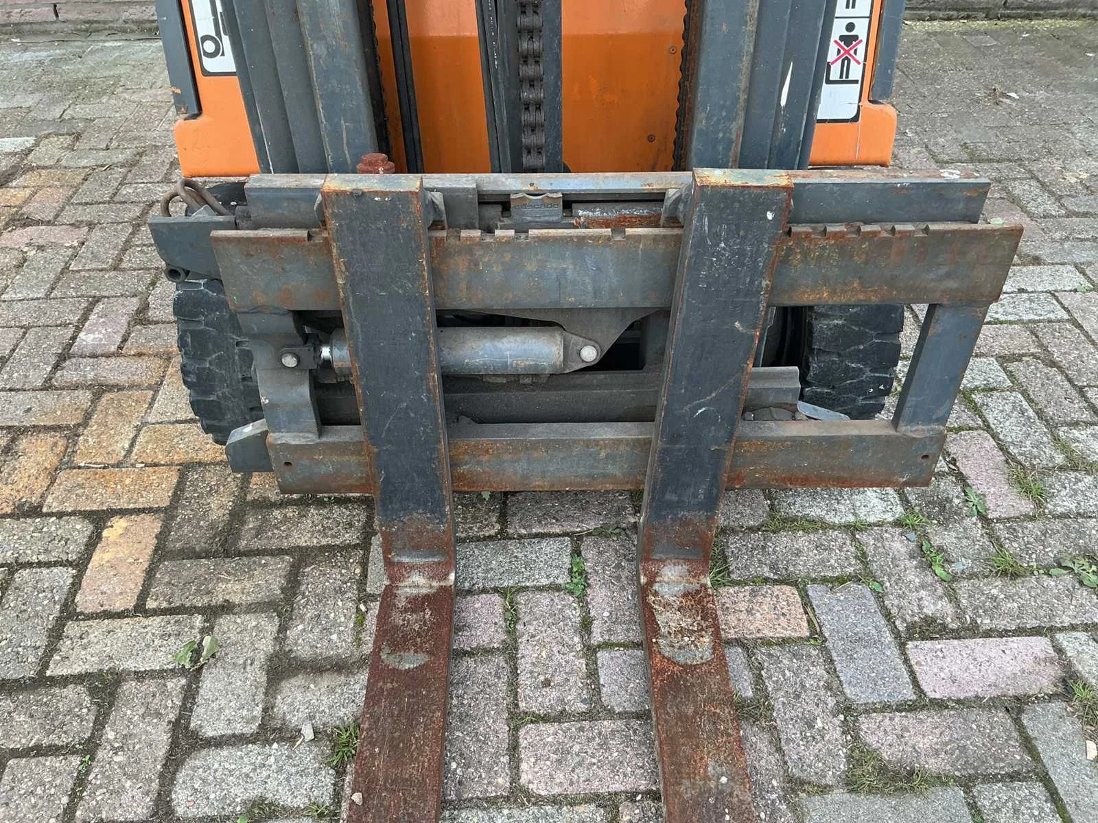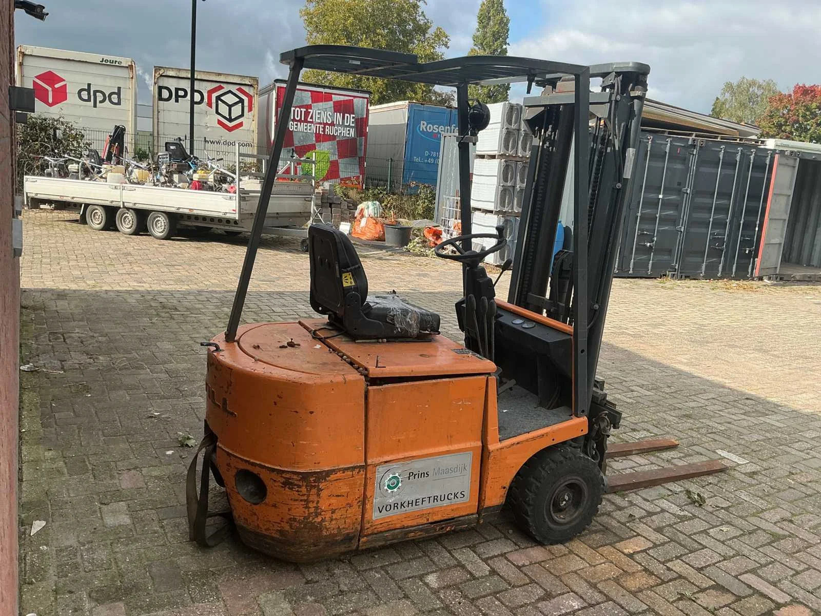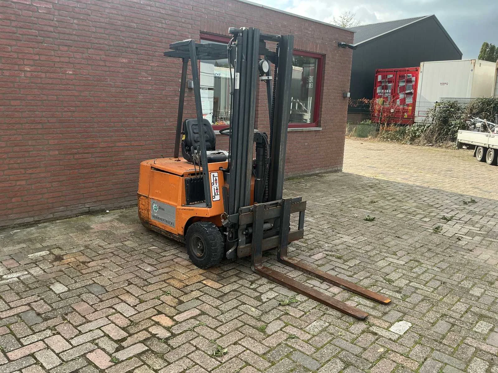 Werking onbekend Geen sleutels Inclusief Acculader Merk: Still Type: P50-15 Bouwjaar: 1993 Brandstof: Elektrisch Accu lader: true Side-shift: true Duplex mast: true Hefvermogen: 1500kg Vol rubber banden: true