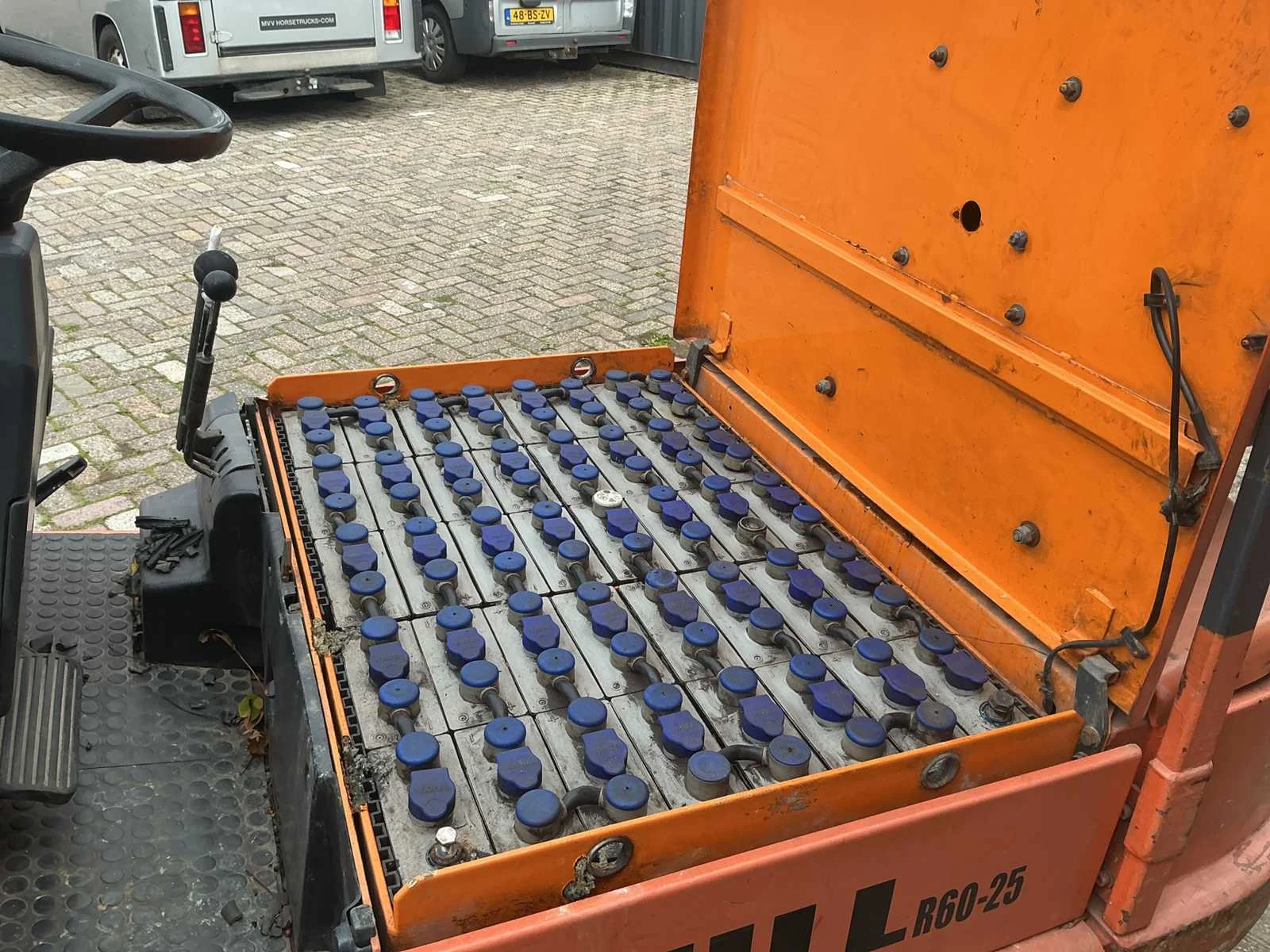 Werking onbekend Geen sleutels Inclusief acculader Merk: Still Type: R60-25 Bouwjaar: 1994 Brandstof: Elektrische Accu lader: true Side-shift: true Duplex mast: true Eigen gewicht: 2985kg Hefvermogen: 2500kg Vol rubber banden: true