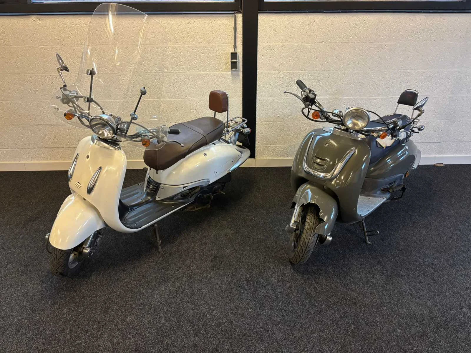 2x scooter Witte scooter start + rijdt Grijze scooter start niet Merk: Benzhou YiYing Model: Snorscooter Type: Sixties / Retro Handelsbenaming: 50RETRO Snelheid: 25km/h Kenteken: D263jt Datum eerste toelating: 2010-04-22 Bouwjaar: 2010 Brandstof: Benzine Kleur: niet van toepassing Afgelezen kilometerstand: 12671km