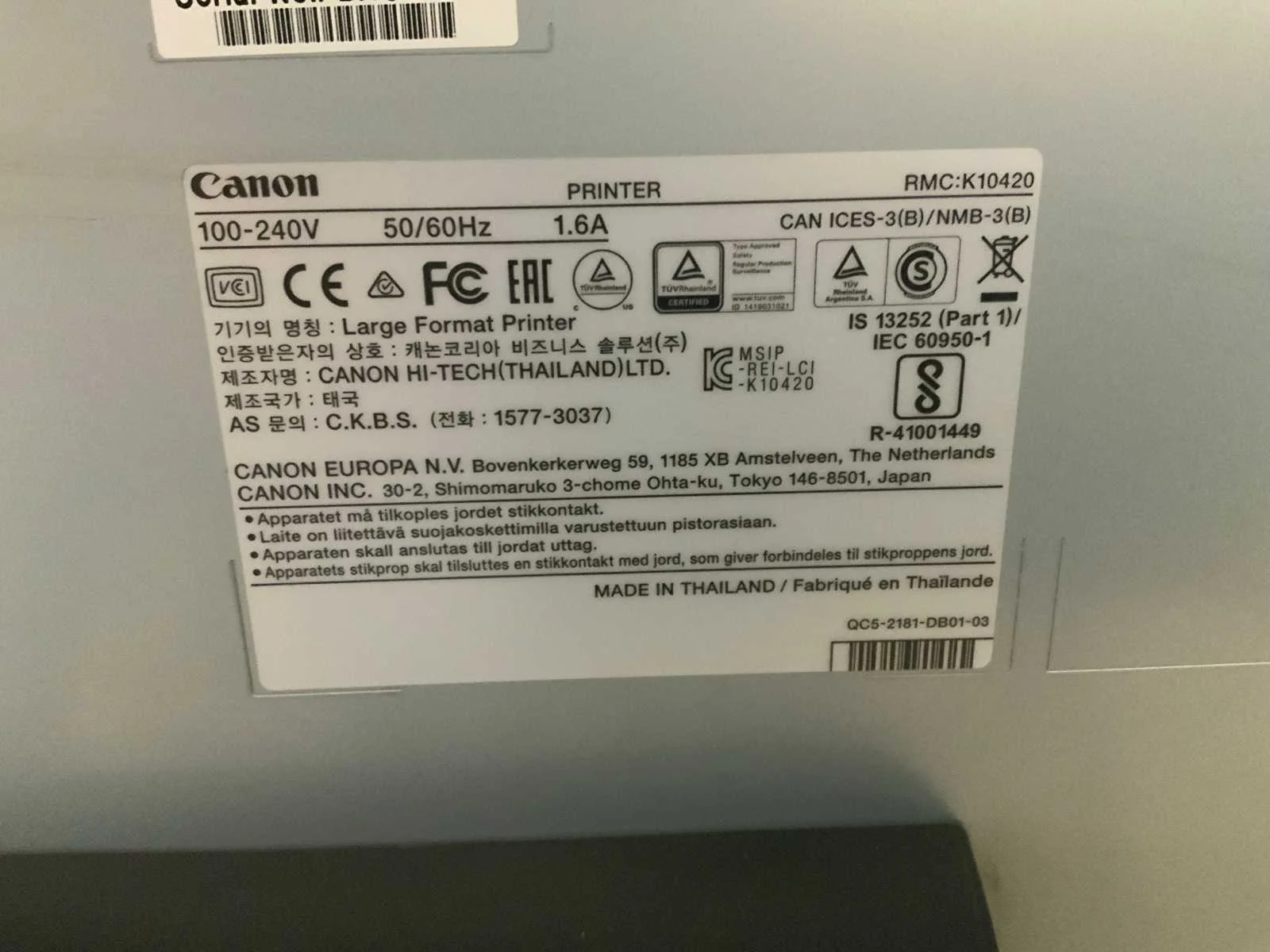 Formaat A1 (594 x 841) Merk: Canon Type: ipf670 Lengte: 102cm Breedte: 84cm Hoogte: 130cm