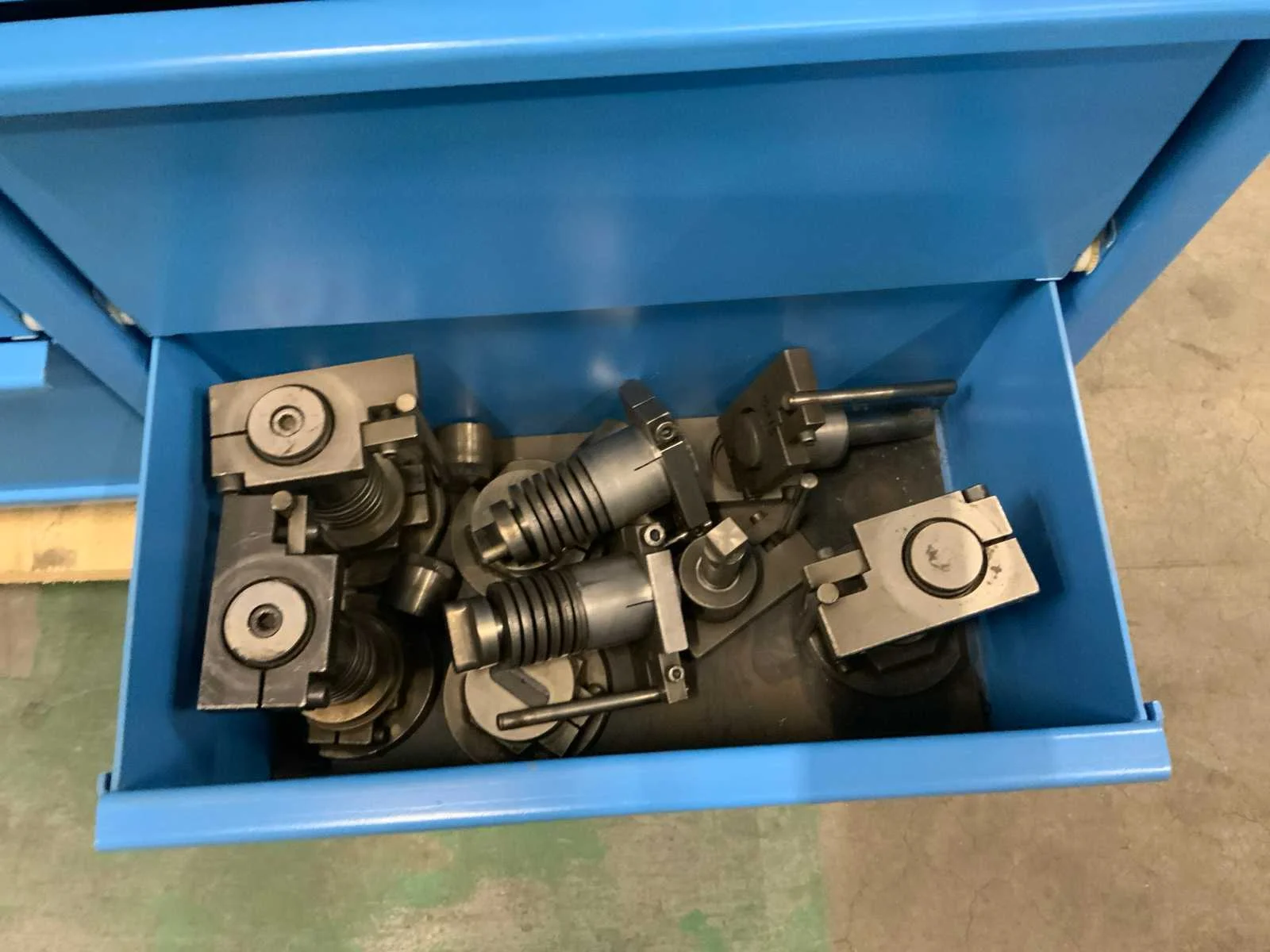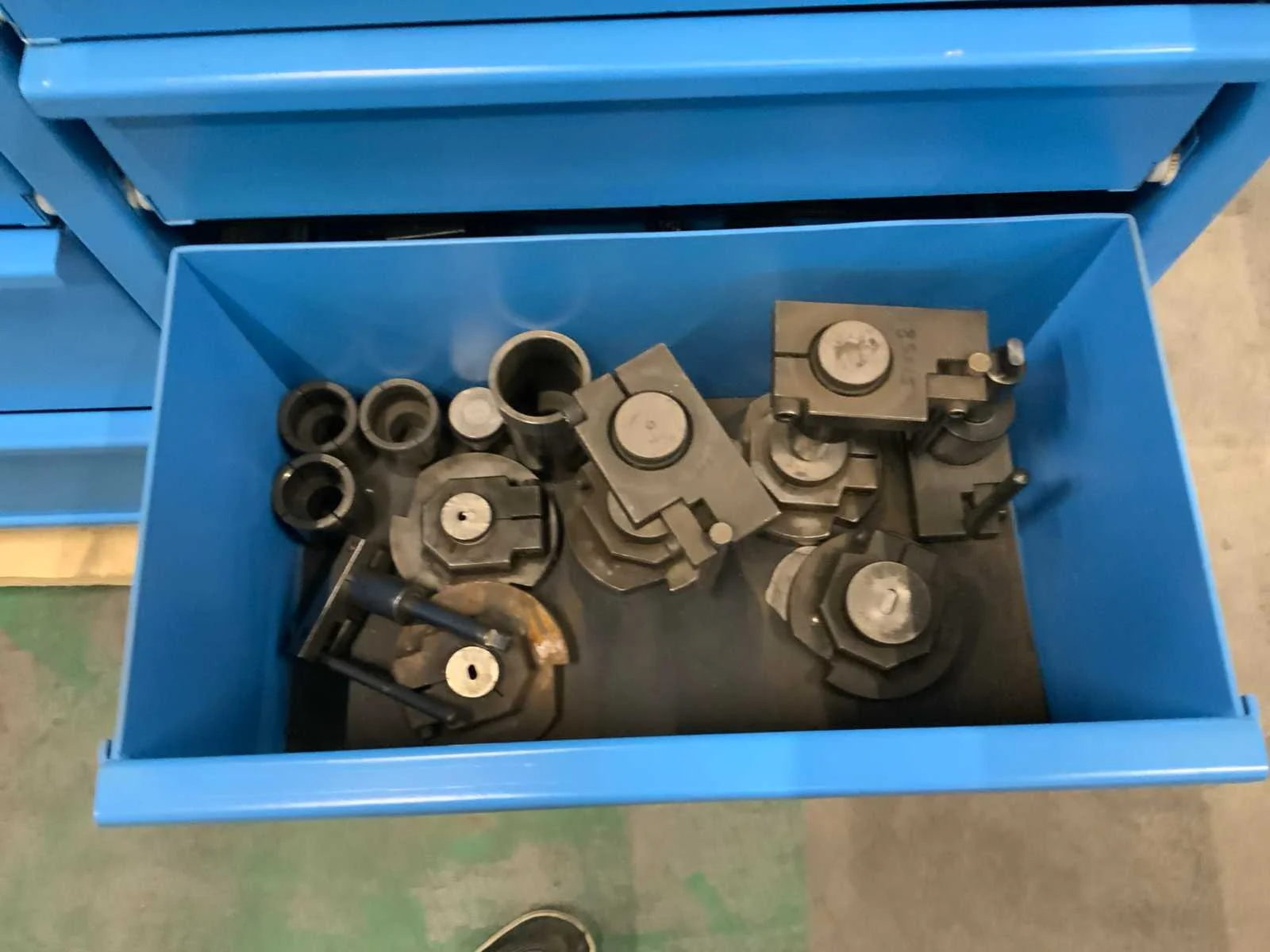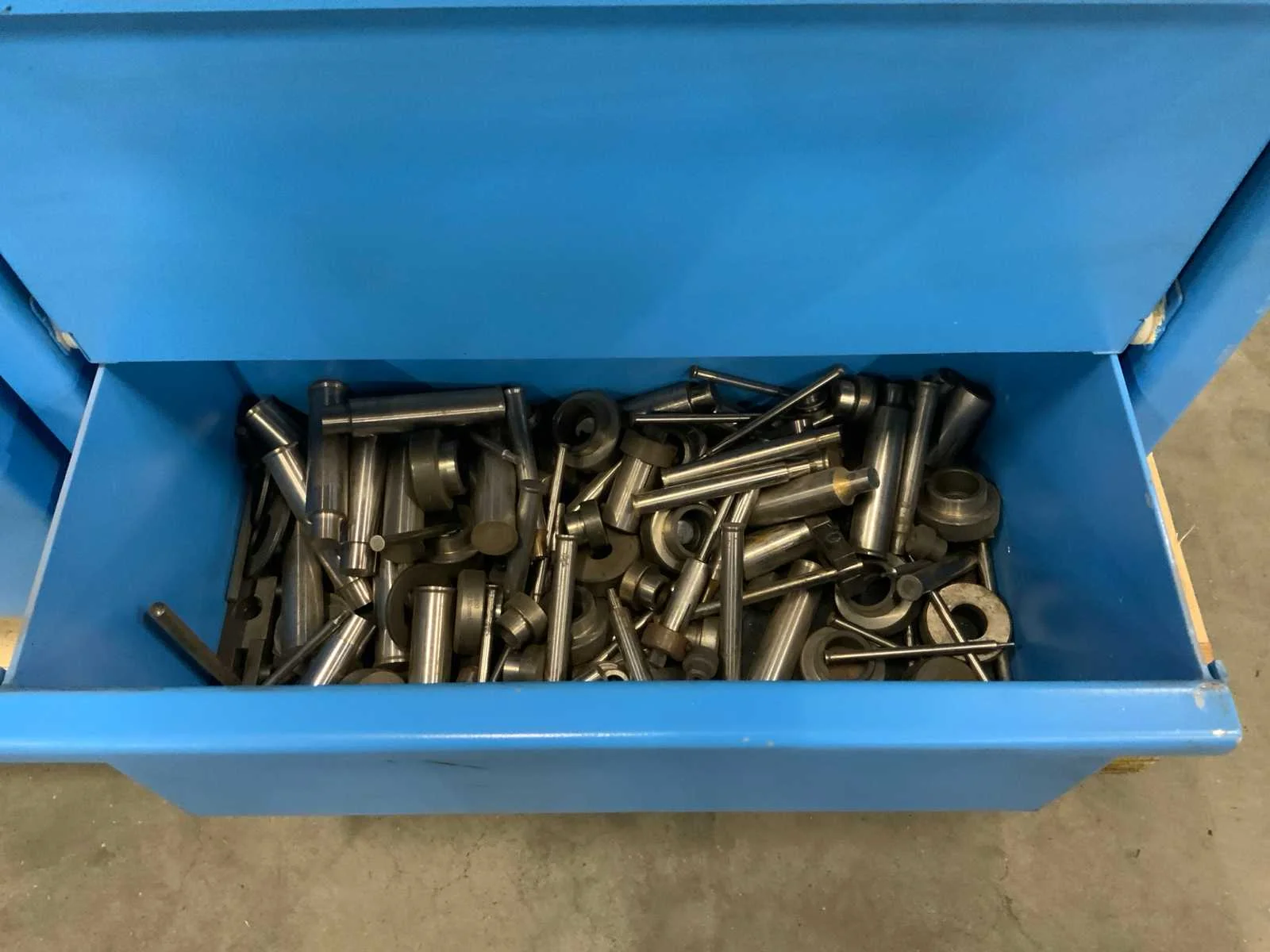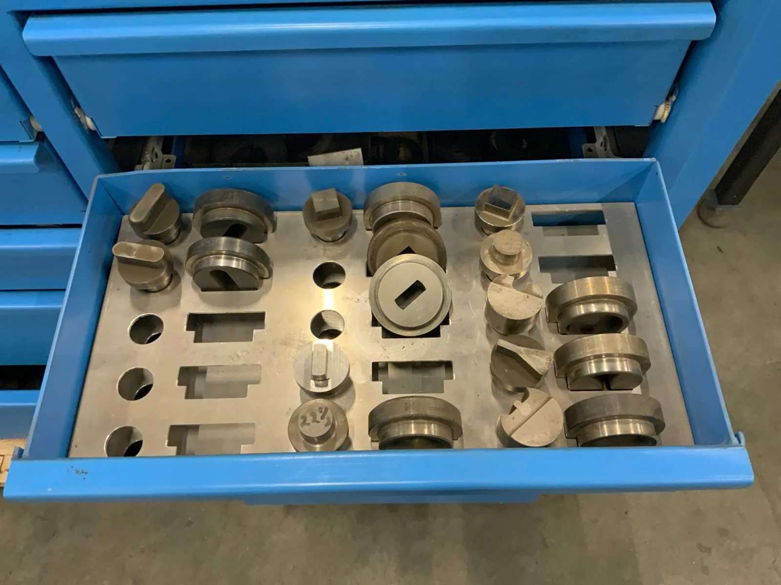 Inclusief tafels en ladekasten gevuld met ponsgereedschappen. Let op!! ophalen 3e uitleveringsdag Merk: Honess Type: HPC 250 Bouwjaar: 1990 Serienummer: 061-90-HNS Voetbediening: true Aansluiting: 400V Afmeting l: 5800mm Afmeting b: 2450mm Afmeting h: 2100mm
