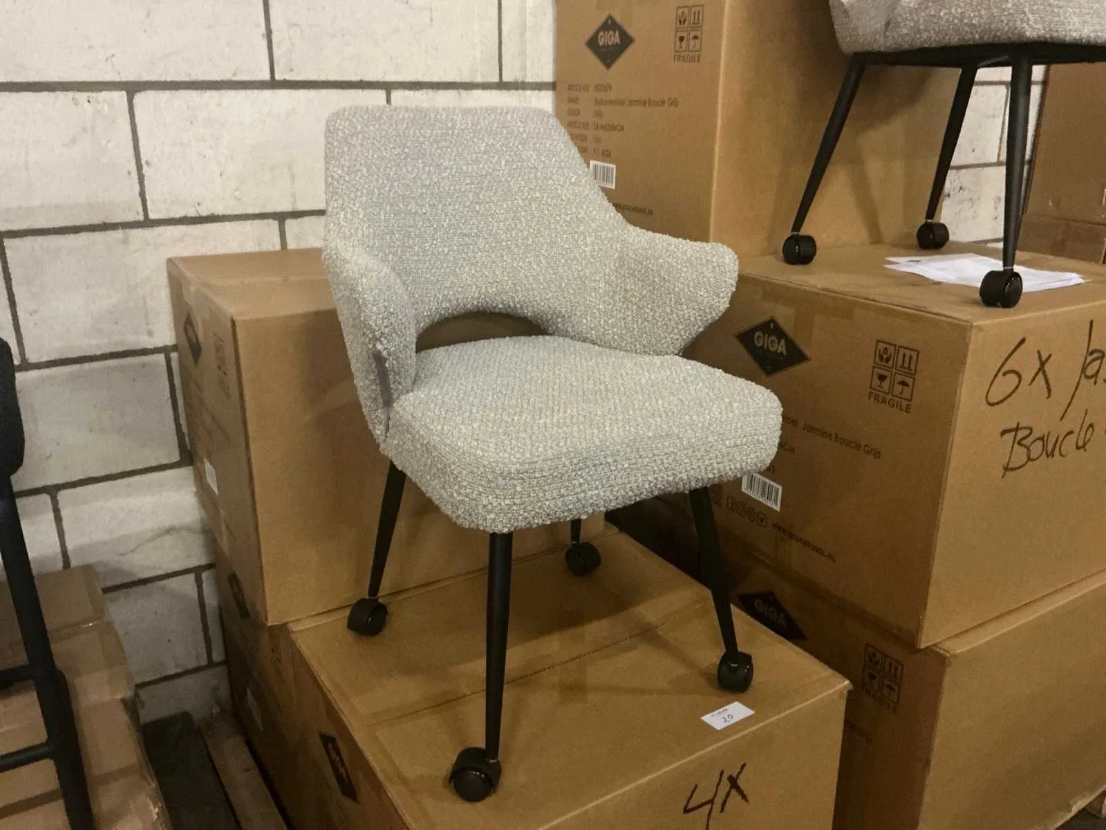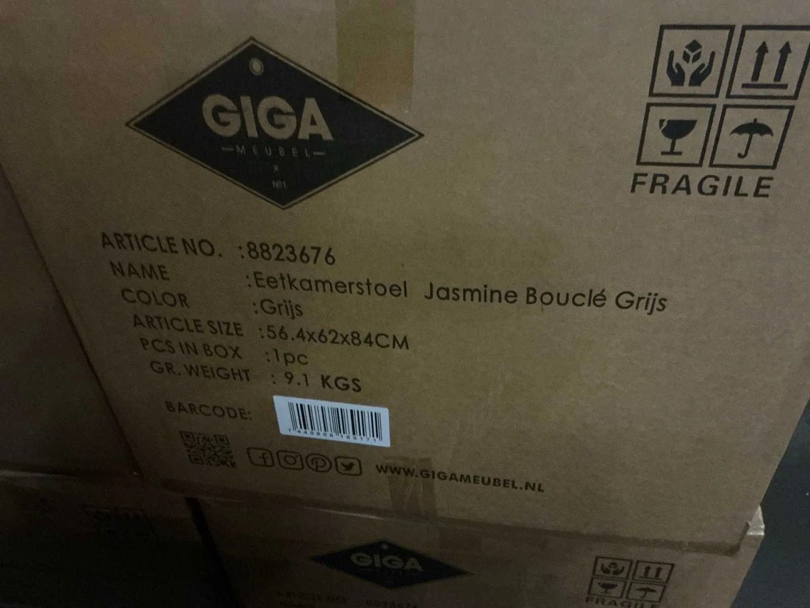 Merk: Giga Meubel Model: Jasmine Kleur: Grijs Lengte: 58cm Breedte: 46cm Hoogte: 88cm Zithoogte: 46cm Materiaal: Teddy