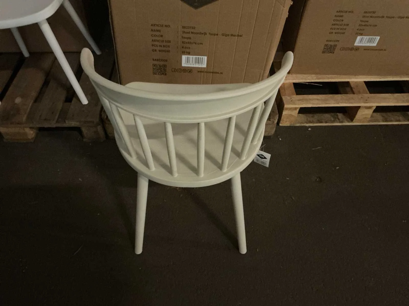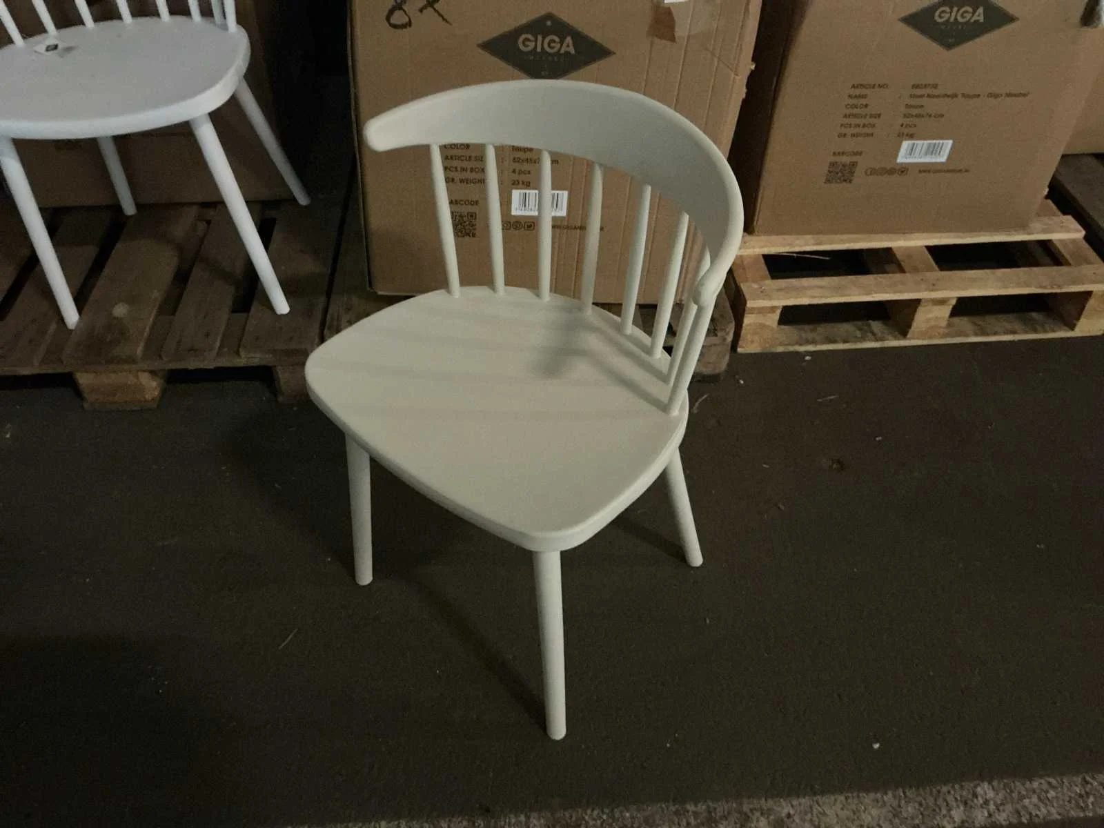 Merk: Gigameubel Model: Noordwijk Kleur: Wit Breedte: 47cm Hoogte: 76cm Zithoogte: 45cm Diepte: 42cm