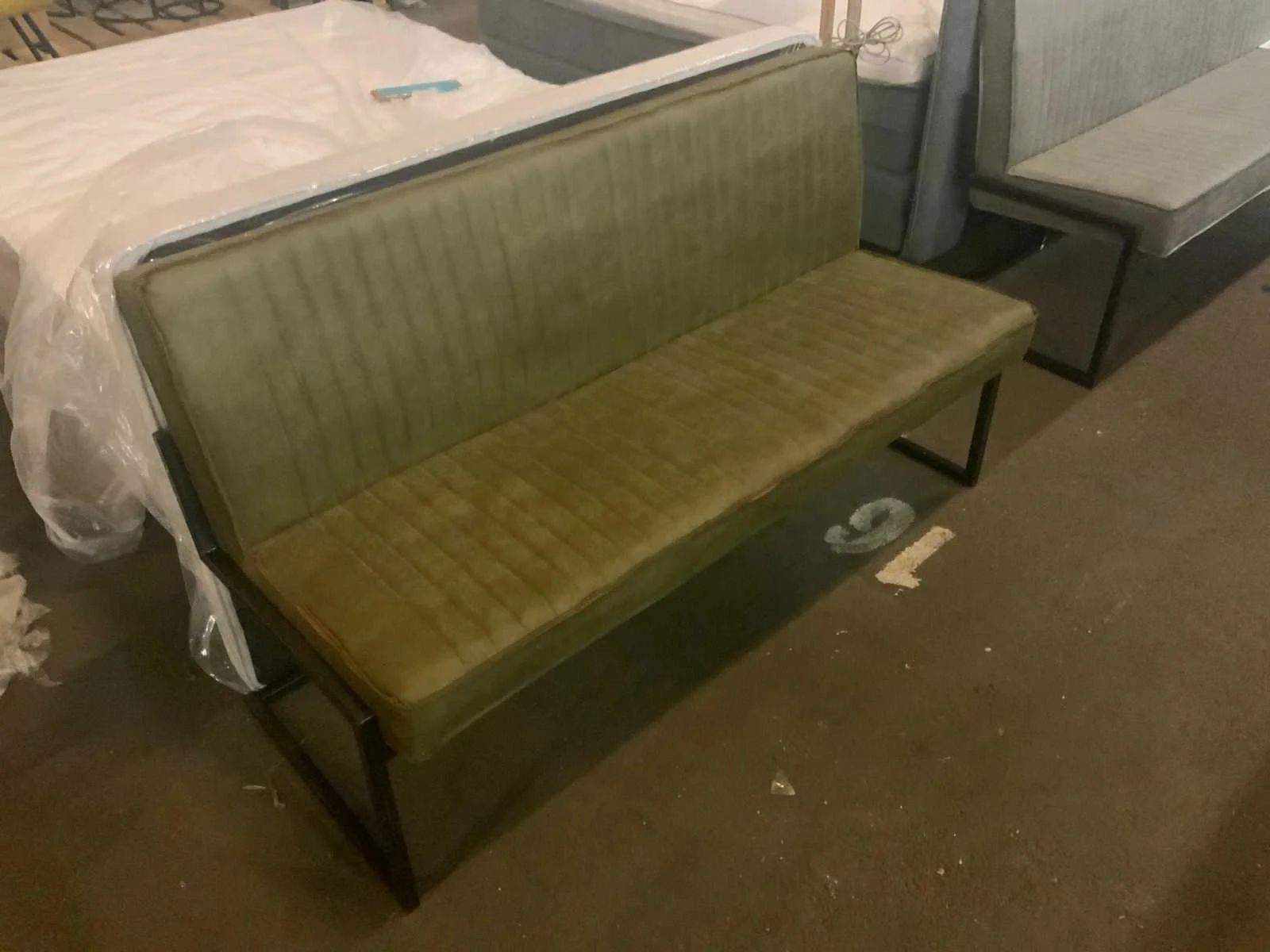 Model: Milano Moss 155cm Lengte: 155cm Hoogte: 90cm Zithoogte: 50cm Materiaal: Stalen slede, kunstleder zitting Diepte: 44cm