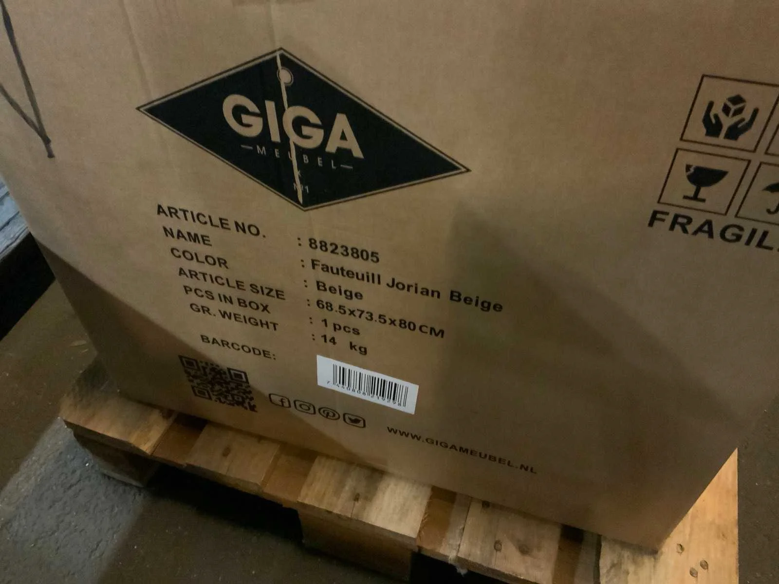 Merk: Giga Meubel Model: Jorian Kleur: Beige Lengte: 68cm Breedte: 73cm Hoogte: 80cm Zithoogte: 43cm Materiaal: Metaal, stof, hout, rotan