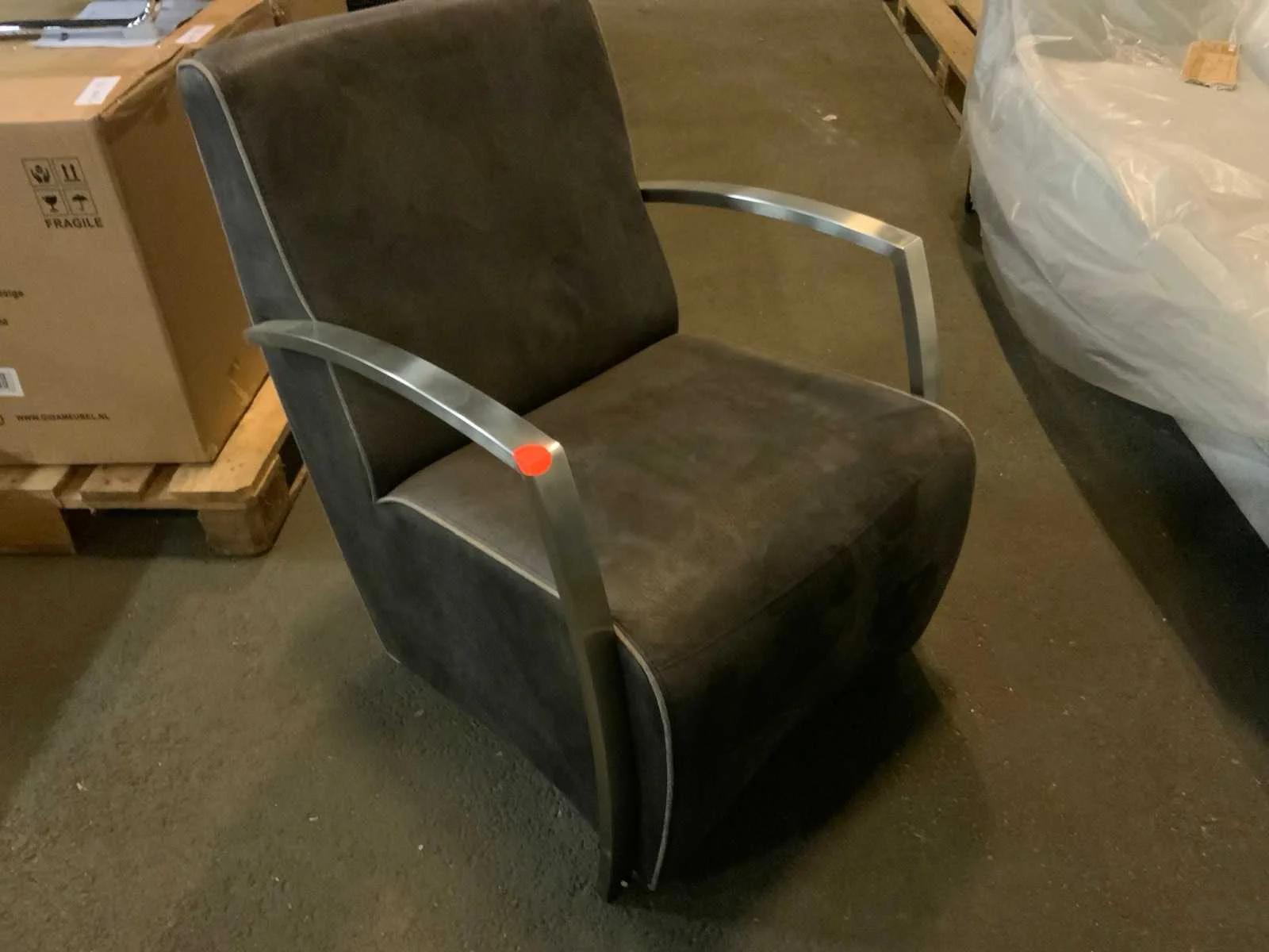 Lengte: 62cm Breedte: 73cm Hoogte: 85cm Zithoogte: 45cm Materiaal: (kunst)leder, metaal