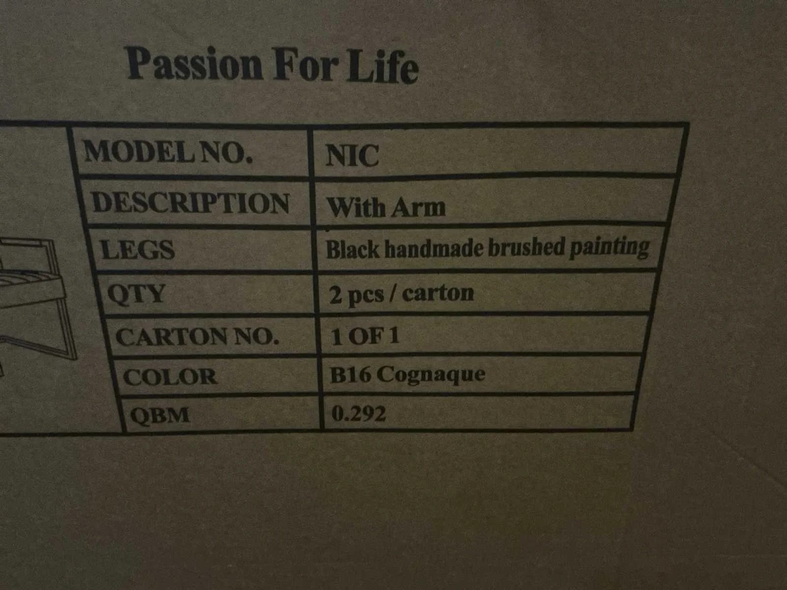 Merk: Passion for Life Model: Nic Kleur: B16 Cognaque Lengte: 49cm Breedte: 61cm Hoogte: 82cm Materiaal: Stoffen bekleding op metalen poot