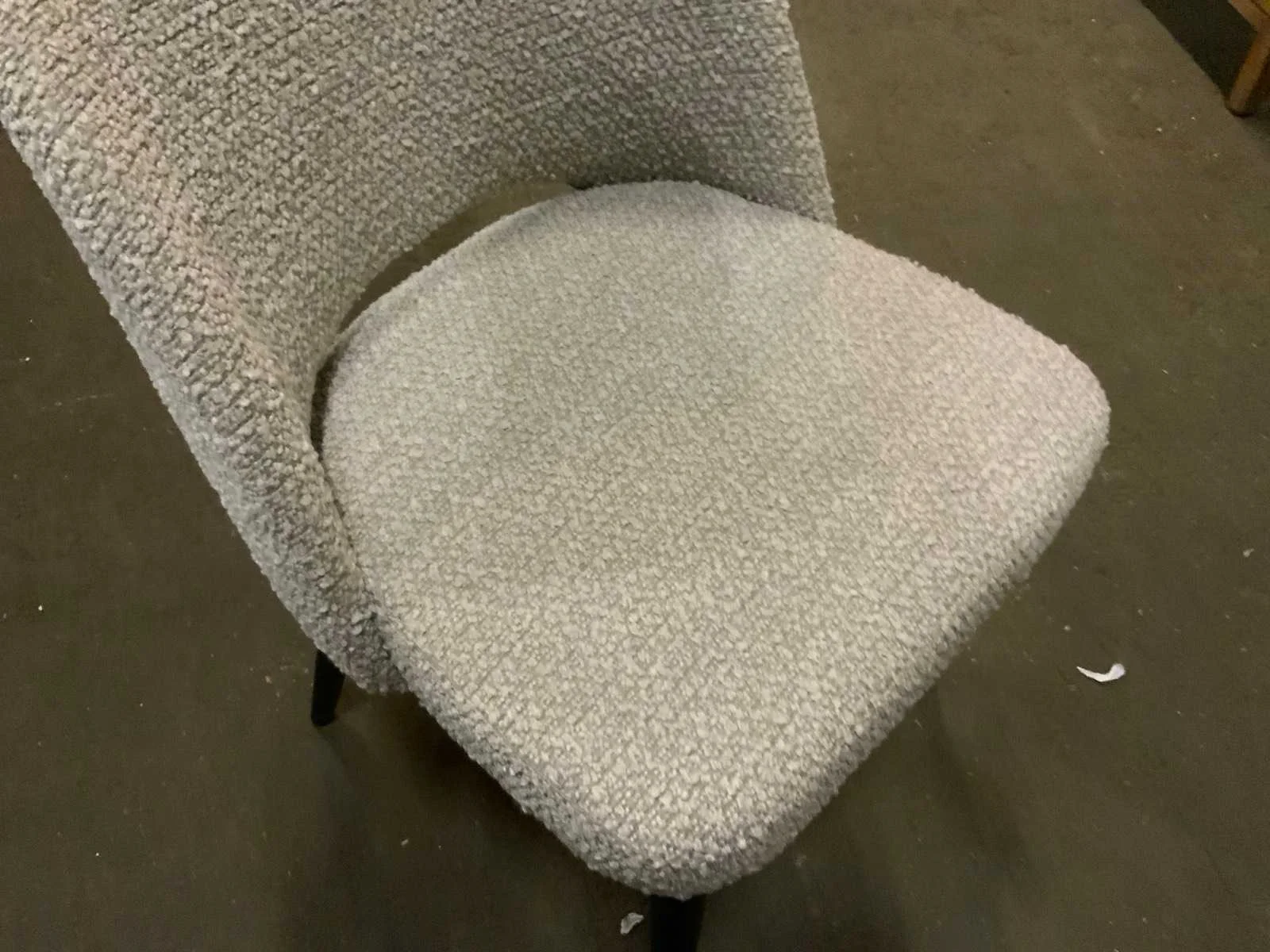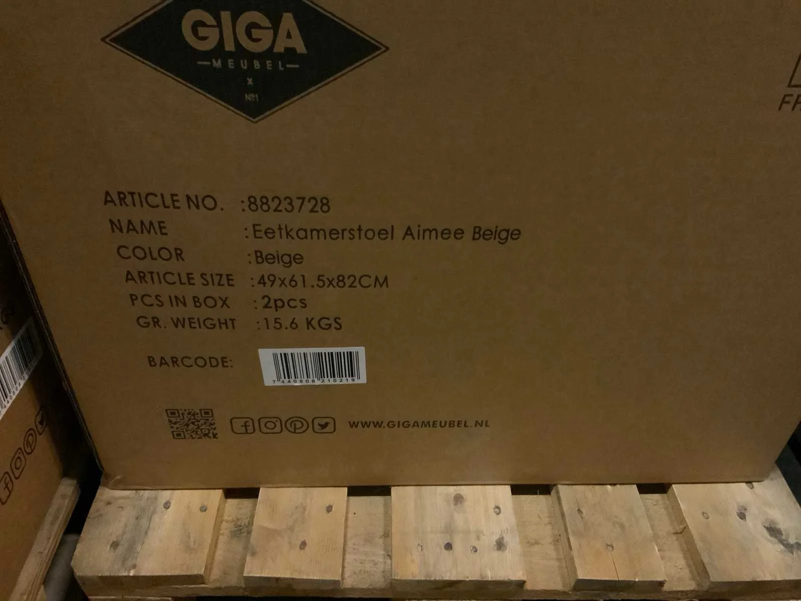 Merk: Giga Meubel Model: Aimee Kleur: Beige Lengte: 49cm Breedte: 61cm Hoogte: 82cm Zithoogte: 48cm Materiaal: Gestoffeerd, metalen poten Diepte: 46cm