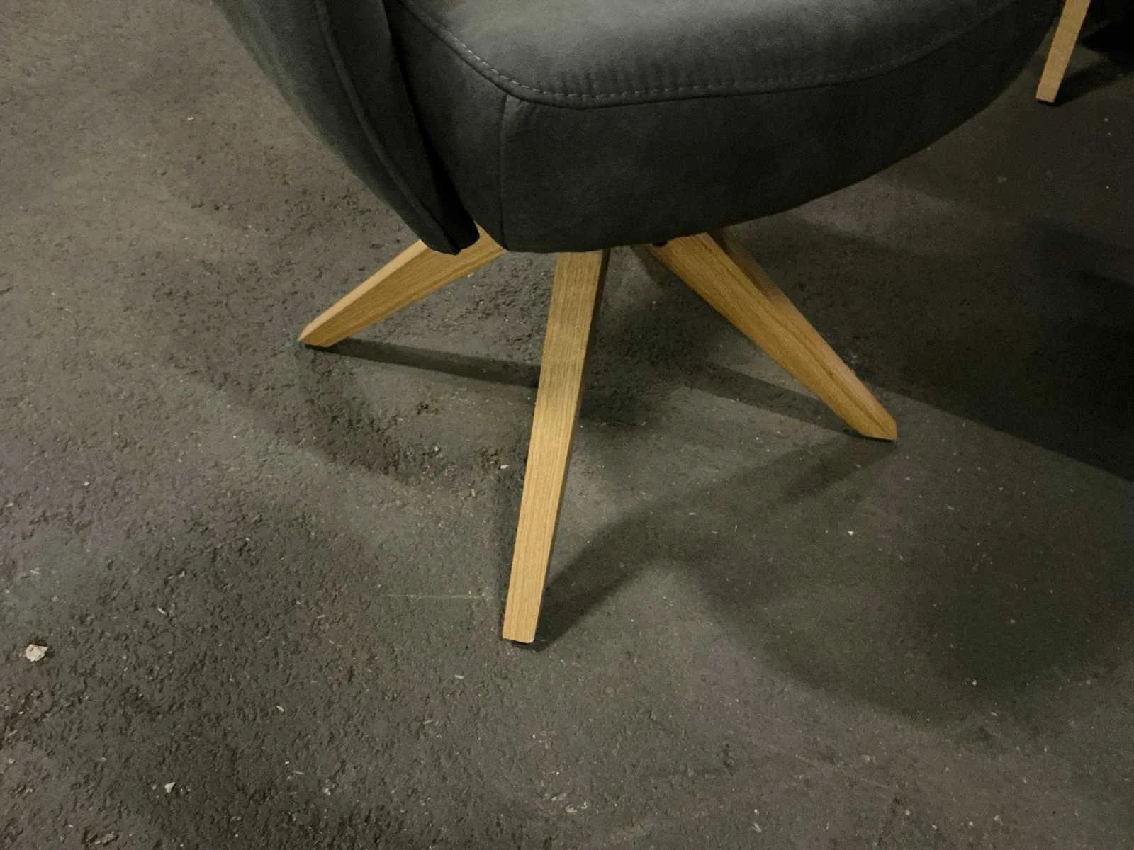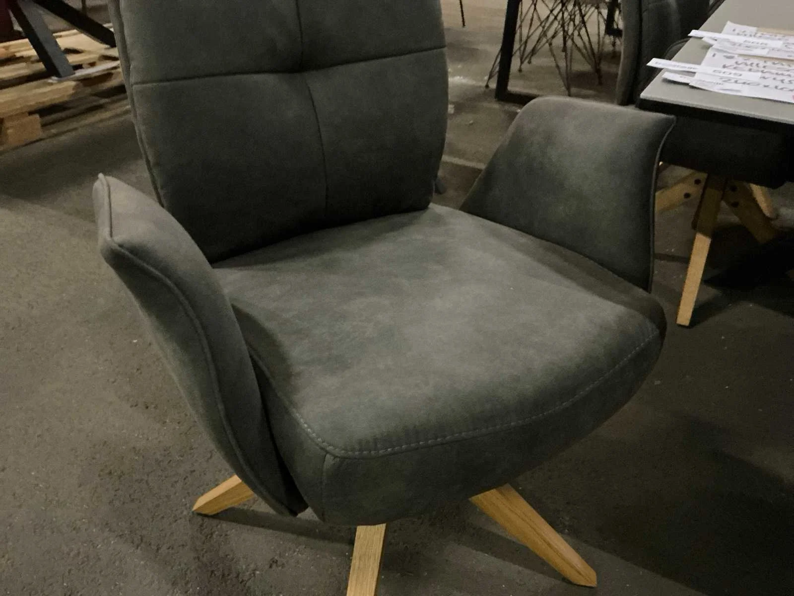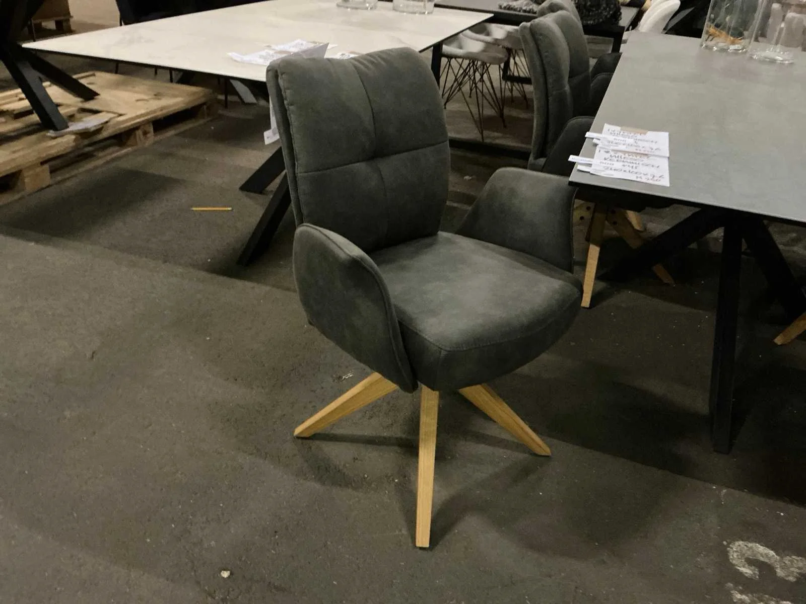 Merk: Vdb Model: Manhattan Kleur: Grija Lengte: 66cm Breedte: 62cm Hoogte: 87cm Zithoogte: 49cm Materiaal: Stoffen bekleding op houten poot