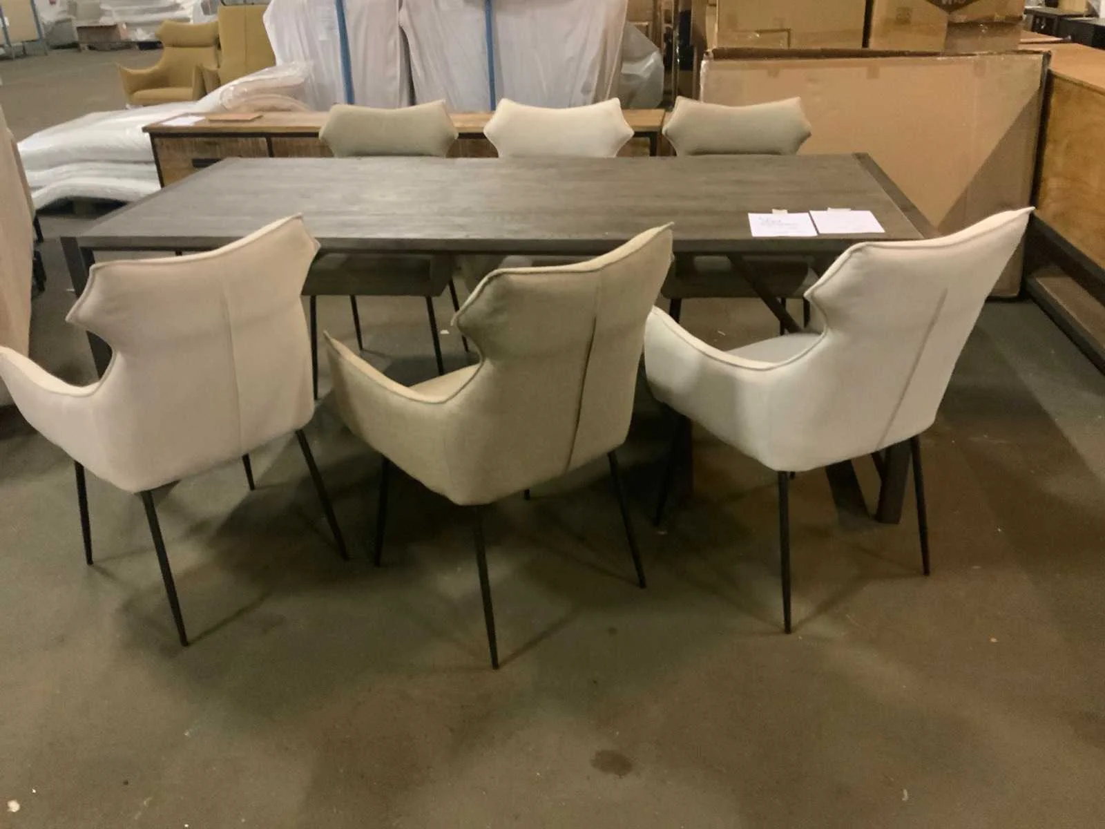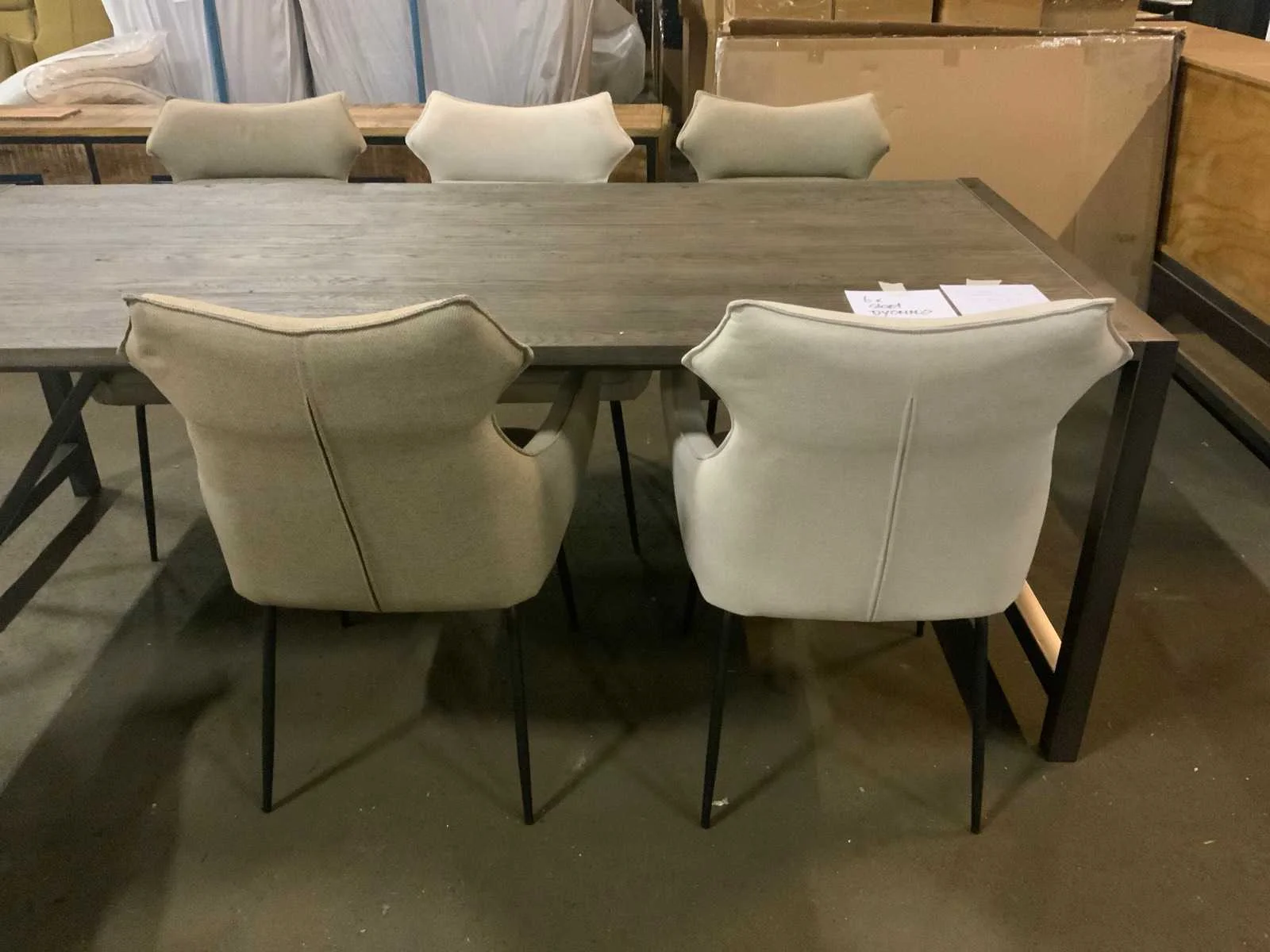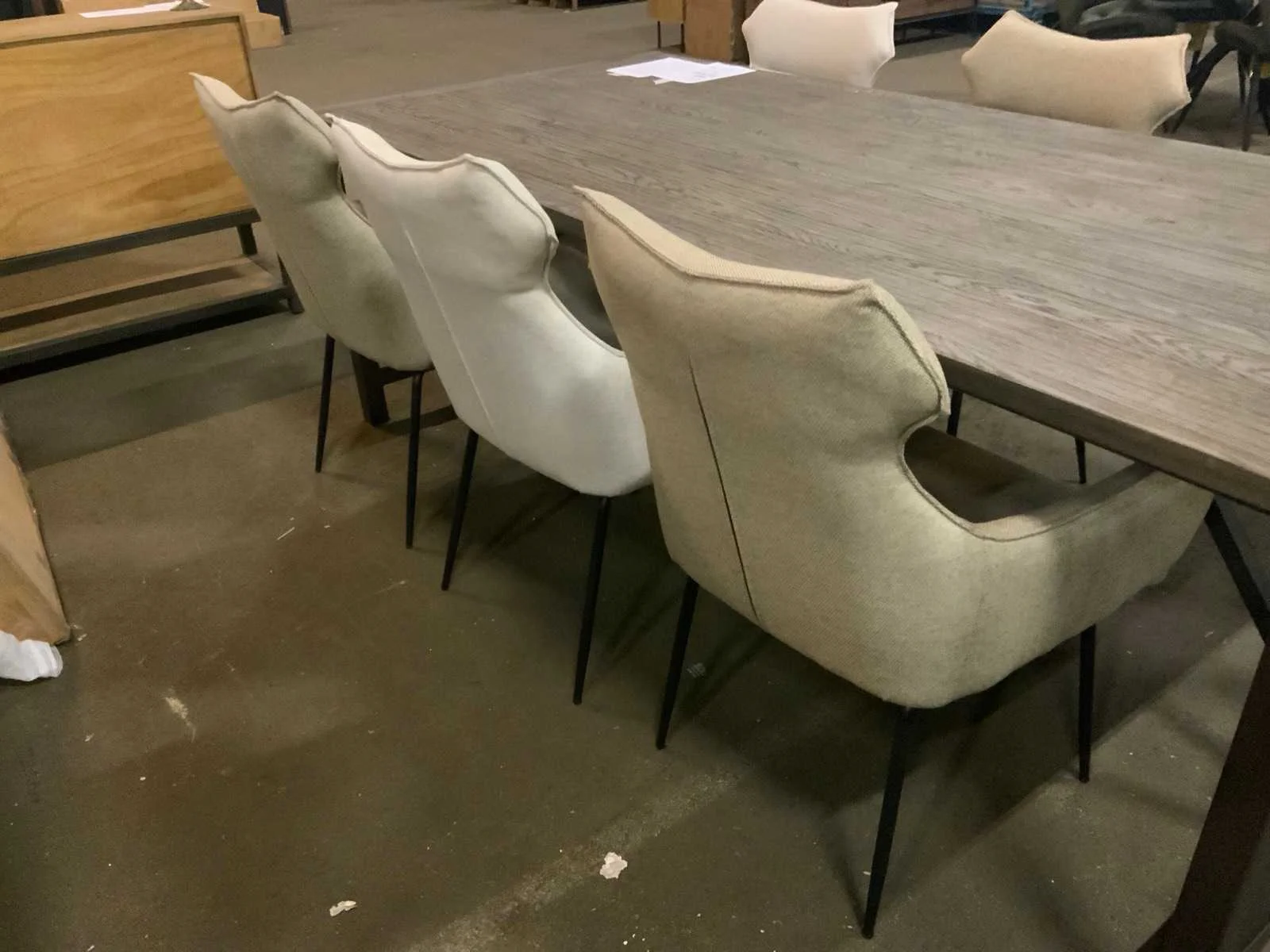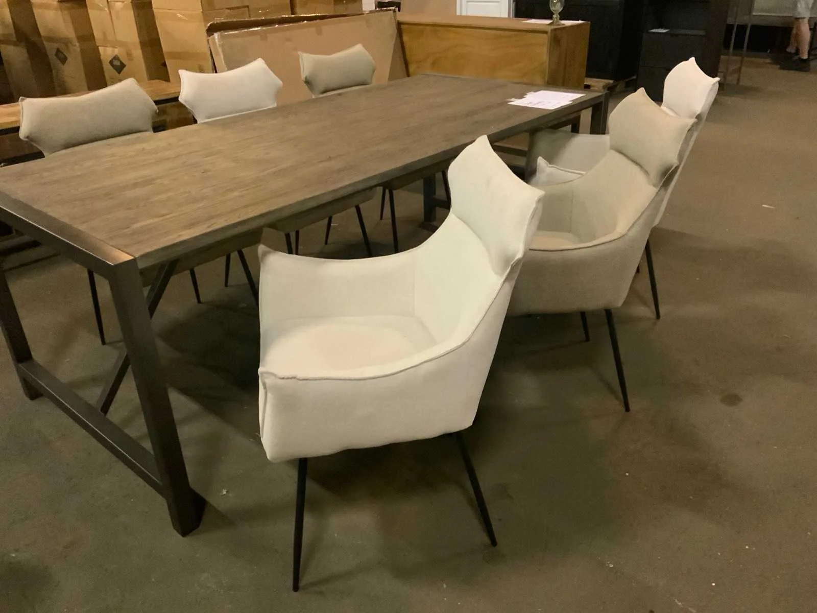 Model: Dyonne Kleur: Creme wit / grijs Breedte: 60cm Hoogte: 90cm Zithoogte: 46cm Materiaal: Stalen poten voorzien van gestoffeerde zitting Diepte: 45cm