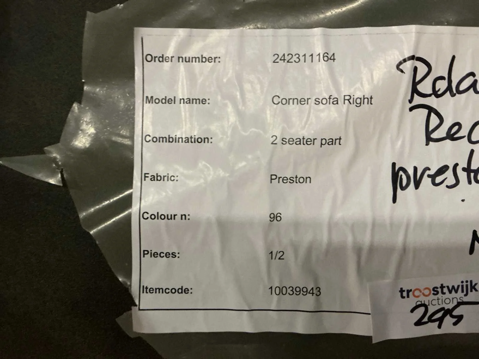 Showmodel Model: Roland rechts Zitplaatsen: 5 Kleur: Preston 96 Lengte: 242cm Breedte: 158cm Hoogte: 82cm Zithoogte: 45cm Diepte: 59cm