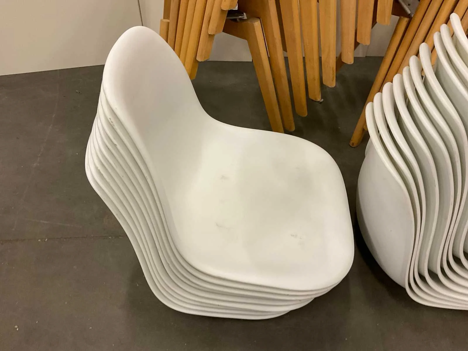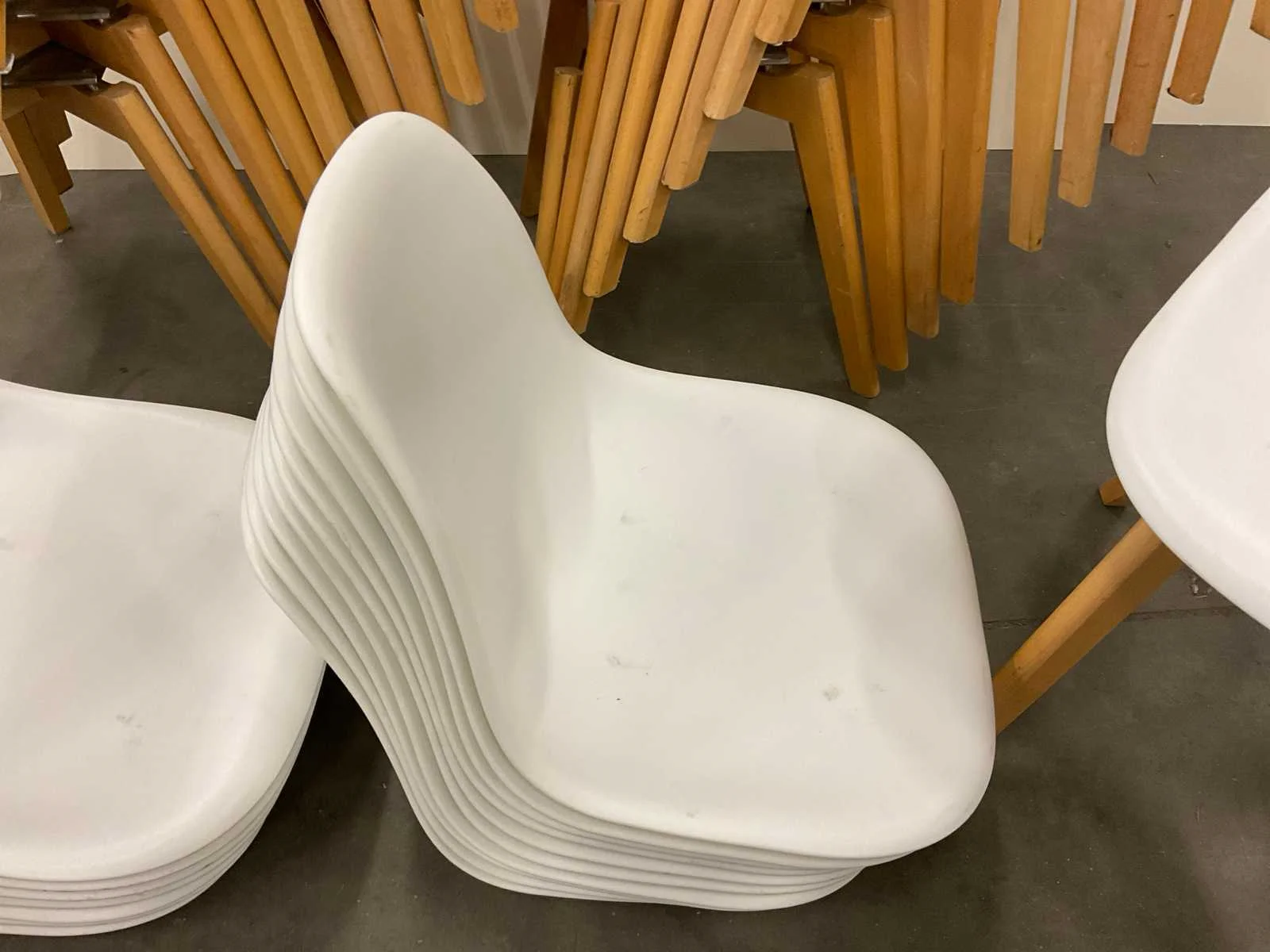 Kunststof zitting, stapelbaar Totale afmeting L: 51cm Totale afmeting Breedte: 47cm Totale afmeting Hoogte: 83cm Hout: true