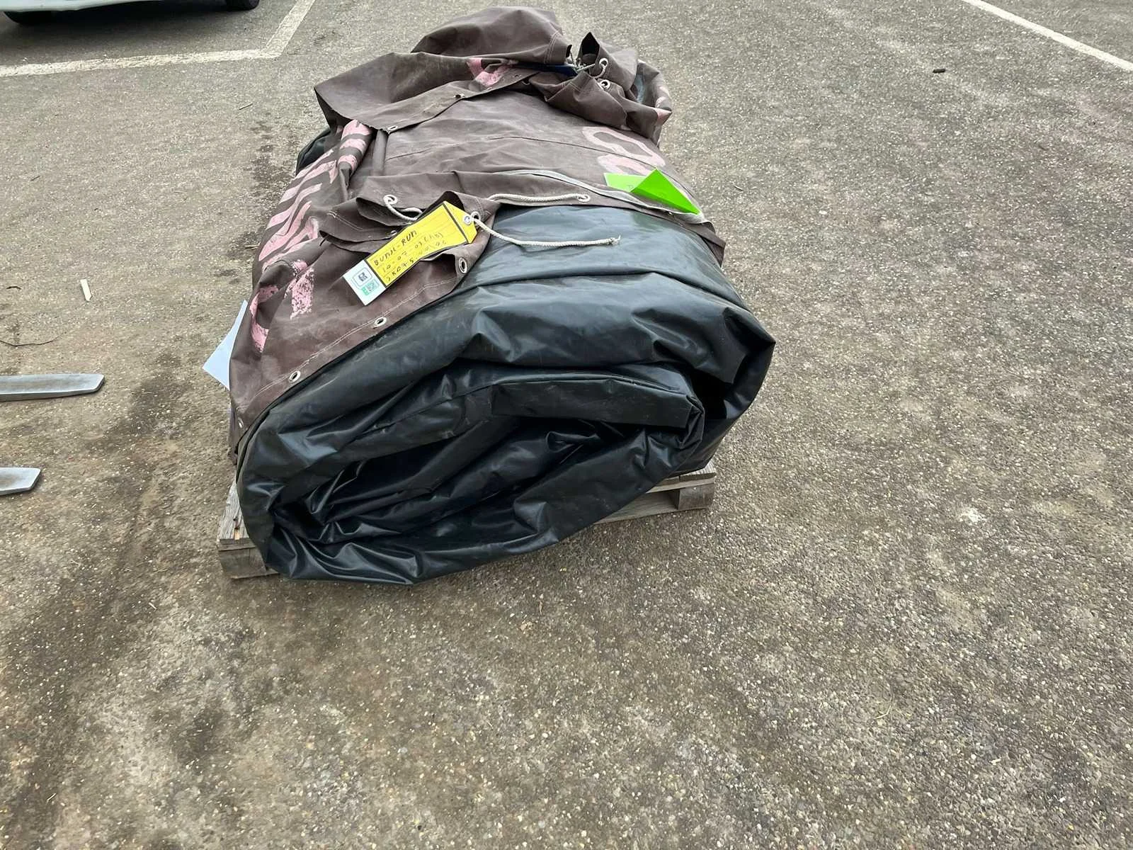 Verkoop exclusief blower, pallet en spanbanden. Verkoop is inclusief de bungee elastieken en tuigjes. Kussen is inclusief geldig certificaat. Lengte: 1000cm Breedte: 400cm Hoogte: 300cm