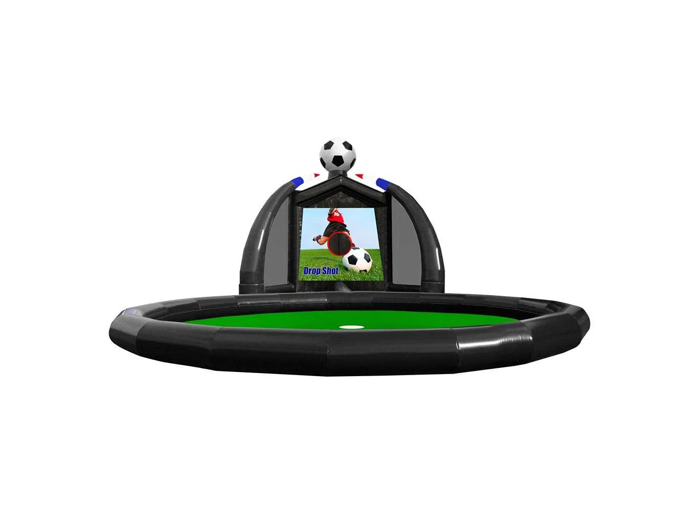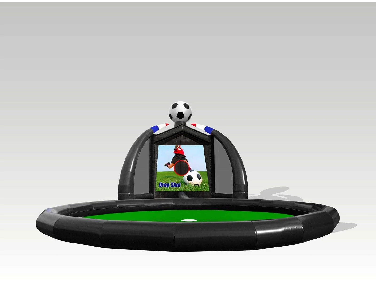 Verkoop exclusief pallet, blower, haspel, voetballen en spanbanden. Lengte: 1400cm Breedte: 600cm Hoogte: 650cm