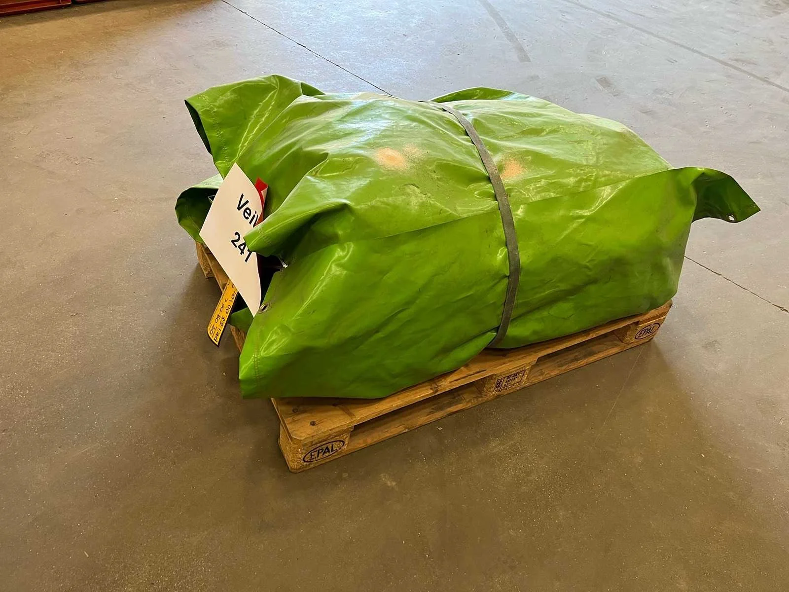 Verkoop exclusief blower, spanbanden en pallet. Lengte: 150cm Breedte: 300cm Hoogte: 550cm