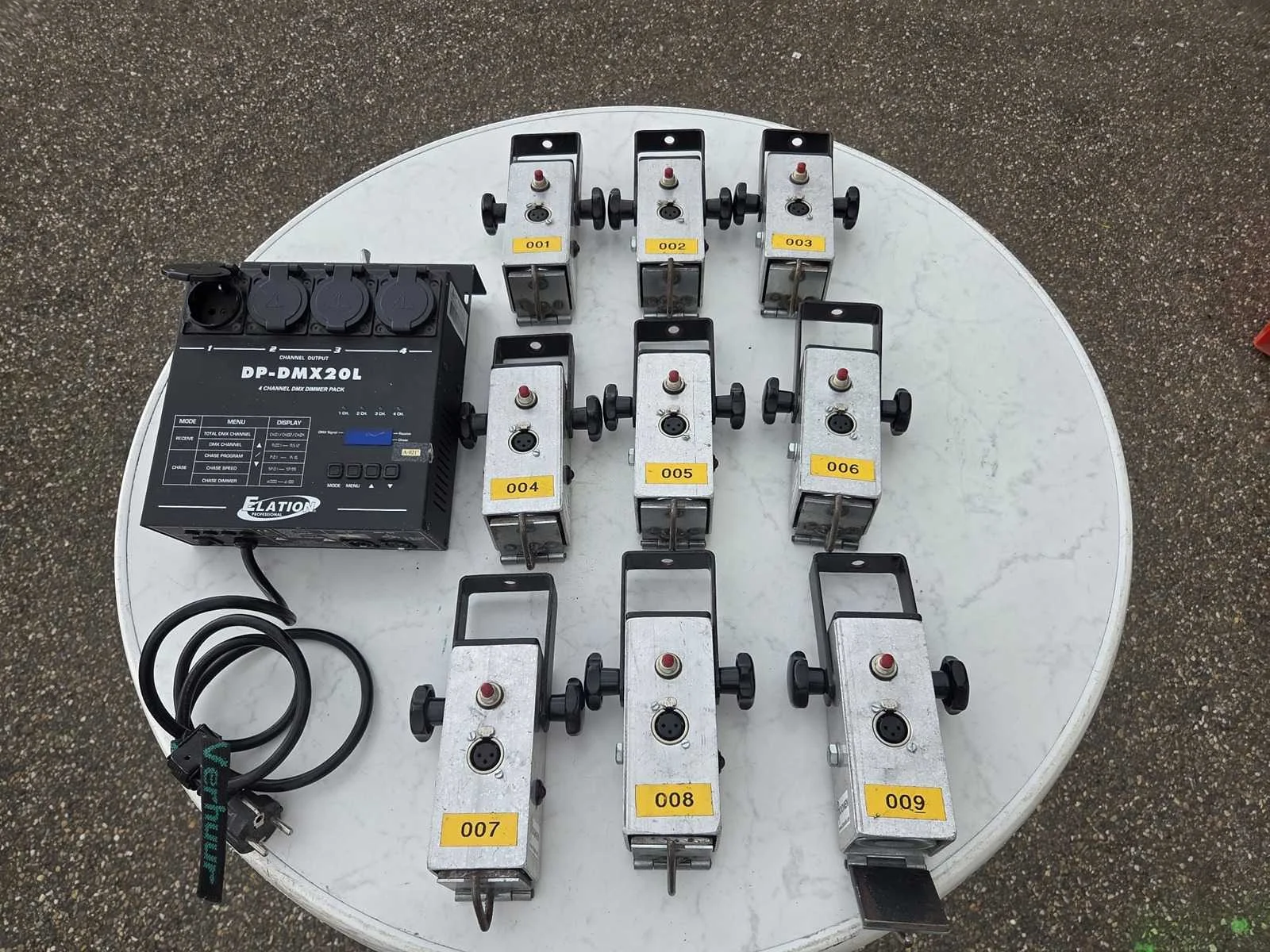 De losse power drops hebben de afmeting 23,5 x 12 x 7,5. Het bedieningskastje 14 x 21 x 28. Verkoop is exclusief kabels.
