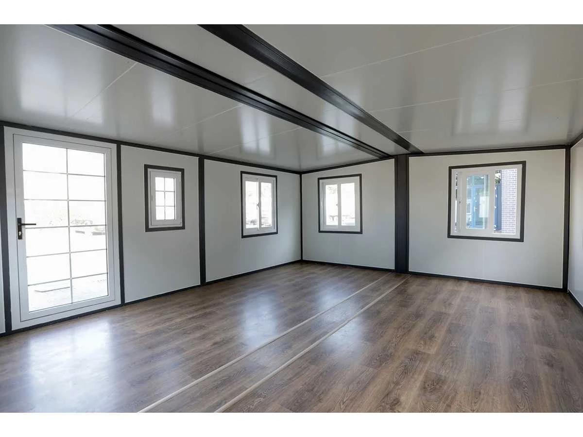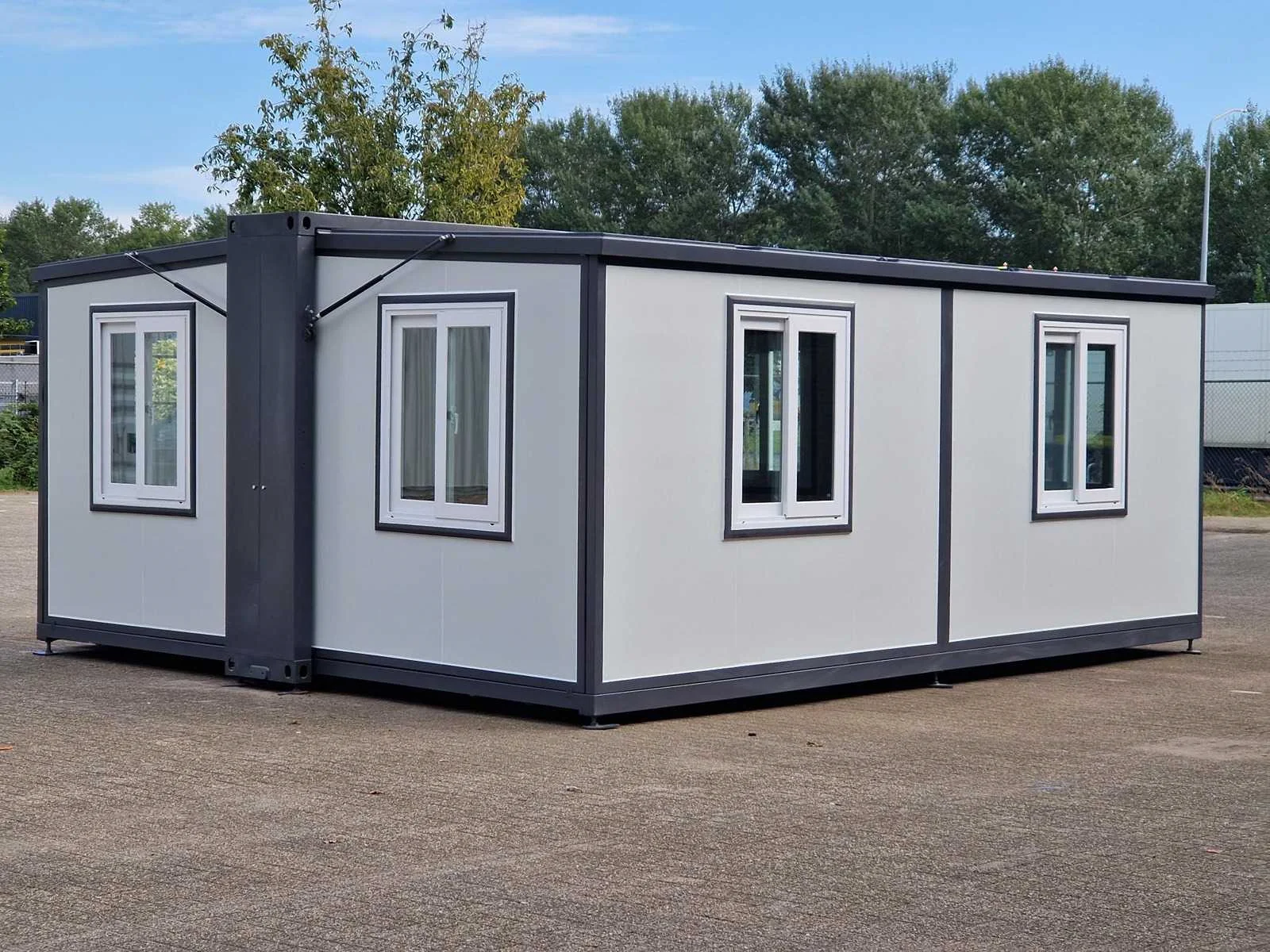 Voorzien van; kunststof kozijnen, dubbel glas, geïsoleerde wanden en dak, afwateringsgoot, vinyl vloer, afsluitbaar met sleutel, 2 x handlier voor vloer te laten zakken, afmeting ingeklapt en voor transport 5890 x 720 x 2550 mm, stelbare poten, 2 rolwielen aan achterzijde, alle 8 ramen kunnen open, zijn voorzien van hor tegen ongedierte, 28 m2 ruimte, ongebruikt Bouwjaar: 2025 Aantal ramen: 8 Uitklapbaar: true Eigen gewicht: 2500kg Totale afmeting L: 4800mm Totale afmeting Breedte: 5850mm Totale afmeting Hoogte: 2500mm