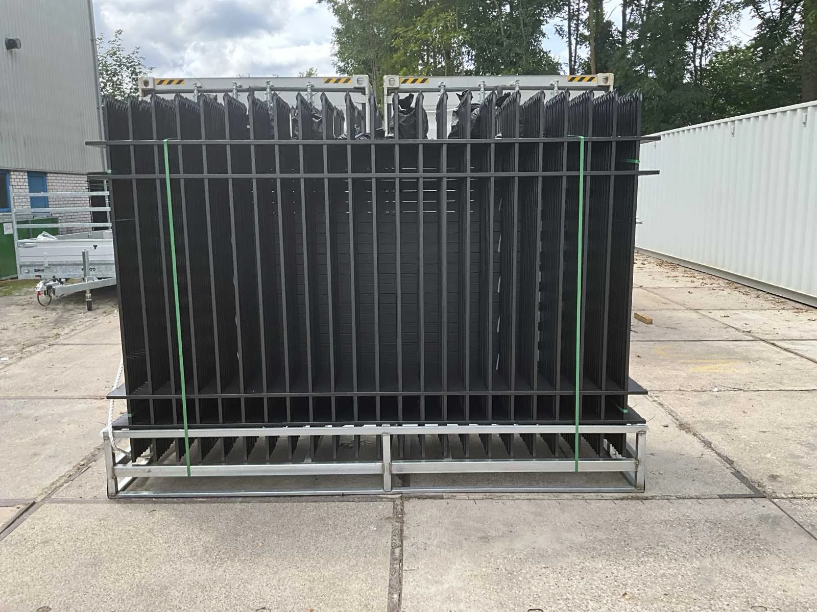 Voorzien van; 24 hekken van 300 cm, 200 cm hoog, palen 250 cm hoog, zwarte poedercoating, bevestiging materialen, klemmen, bouten/ moeren, ongebruikt Product type: 72 meter