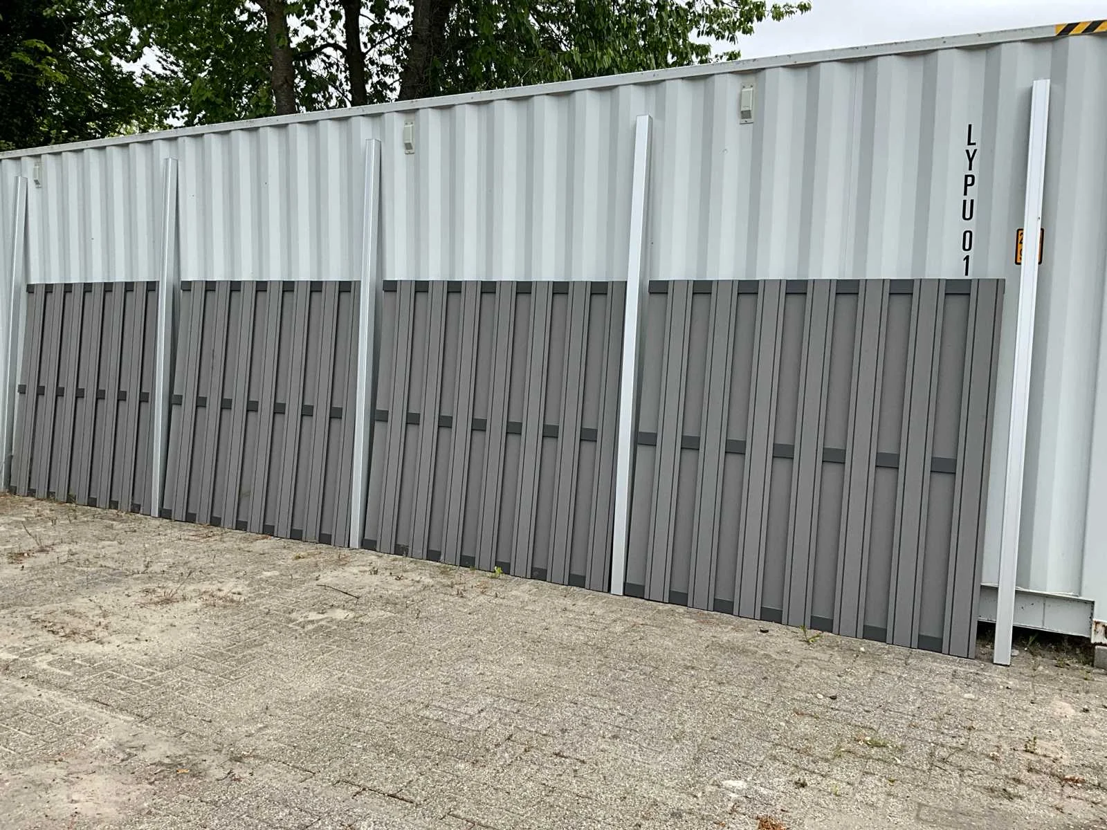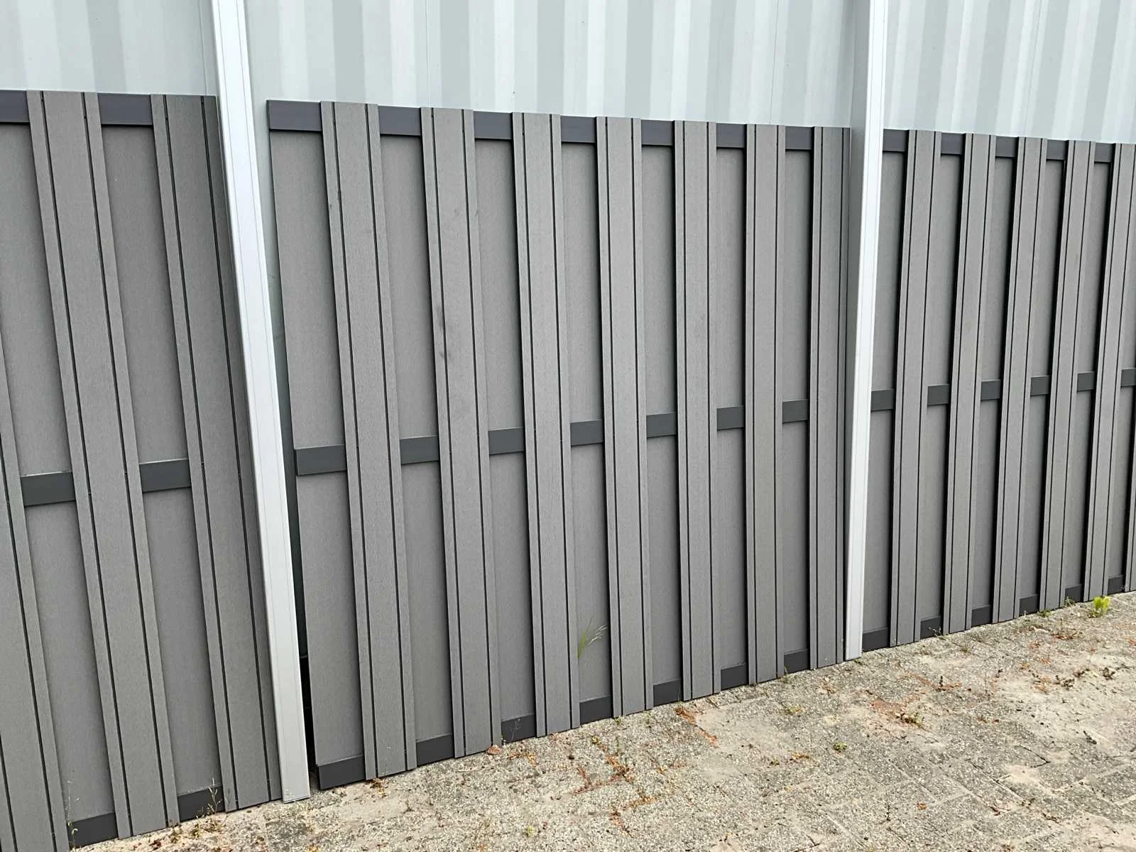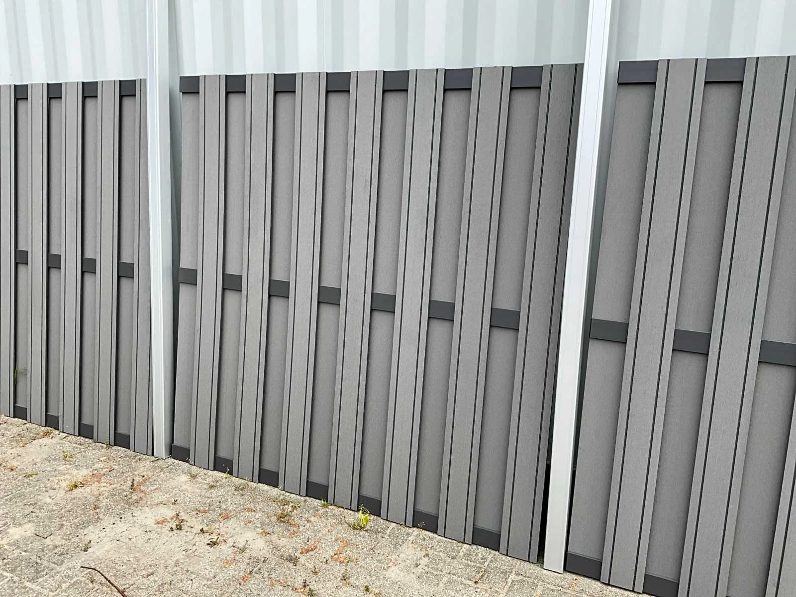 Set van 10 schutting delen van 180 x 180 cm, 11 aluminium palen 7x7x270 cm, palen kunnen worden ingekort of in de grond door middel van snel beton, ongebruikt Merk: Topline Product type: Composiet Kleur: Antraciet Lengte: 180cm Breedte: 3cm Hoogte: 180cm