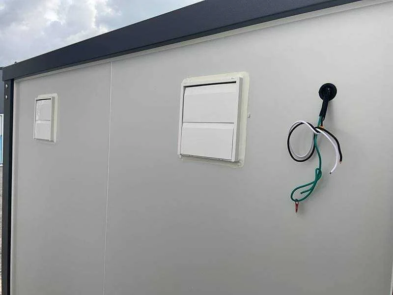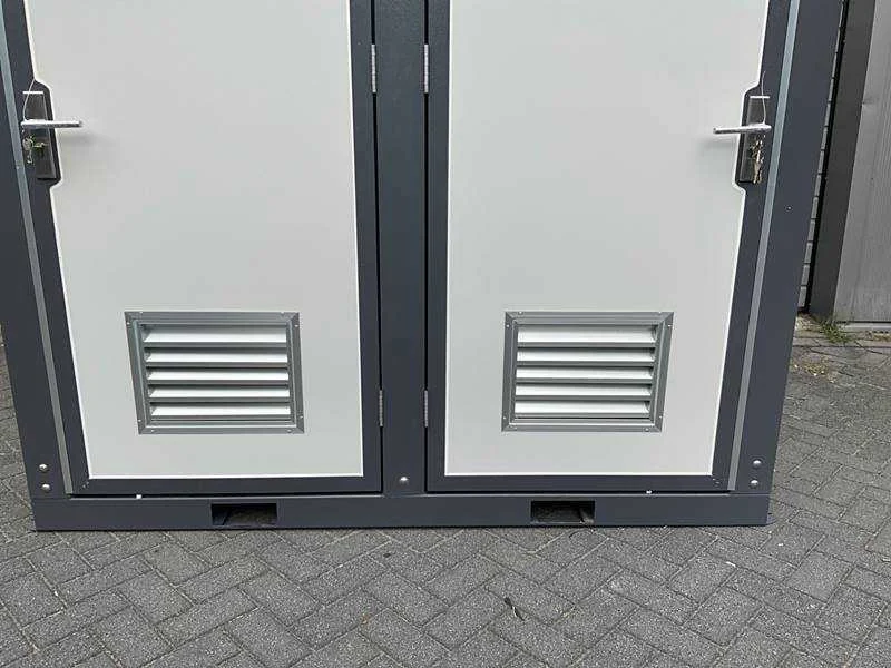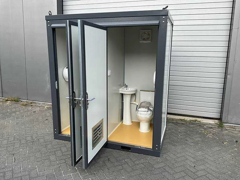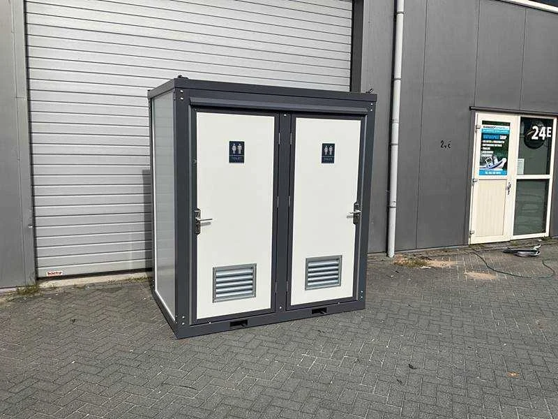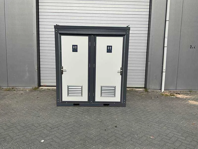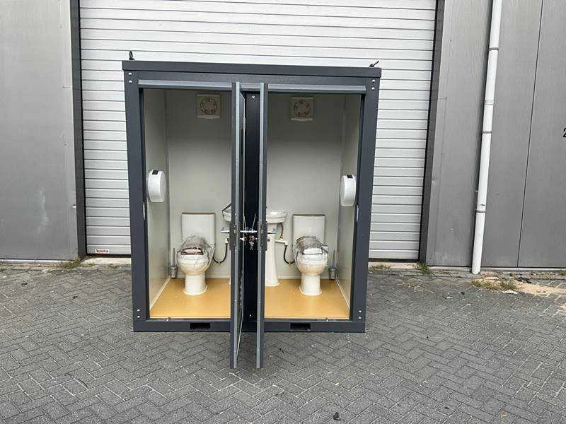 V.v. 2 toiletten, 2 wastafels, wc borstels, toiletrolhouders, afzuiging 220v, afsluitbaren deuren, met sleutels, hijsogen, ongebruikt Merk: Greenland Type: Dubbel Bouwjaar: 2025 Aantal toiletten: 2 Aantal wastafels: 2 Eigen gewicht: 490kg Totale afmeting L: 2160mm Totale afmeting Breedte: 1300mm Totale afmeting Hoogte: 2360mm