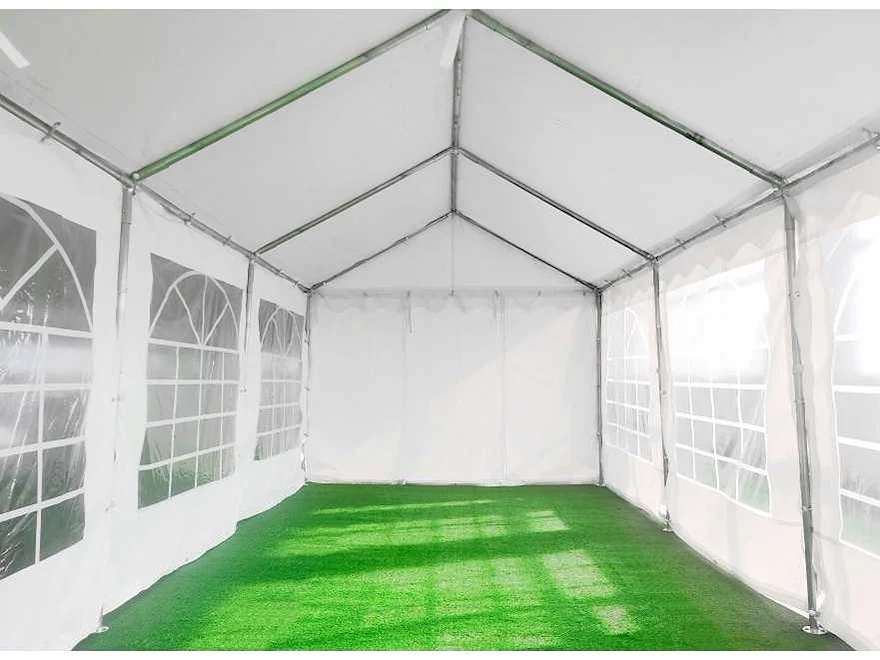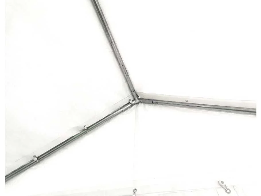 Gegalvaniseerd frame, 38mm x 1mm dik, gording 25 x 0.8 mm, 380 gram pvc zeil wit, professionele kwaliteit ongebruikt in krat Merk: Greenland Model: 12x6x3 meter Kleur: wit Gewicht: 300kg Lengte: 1200cm Breedte: 600cm Hoogte: 300cm