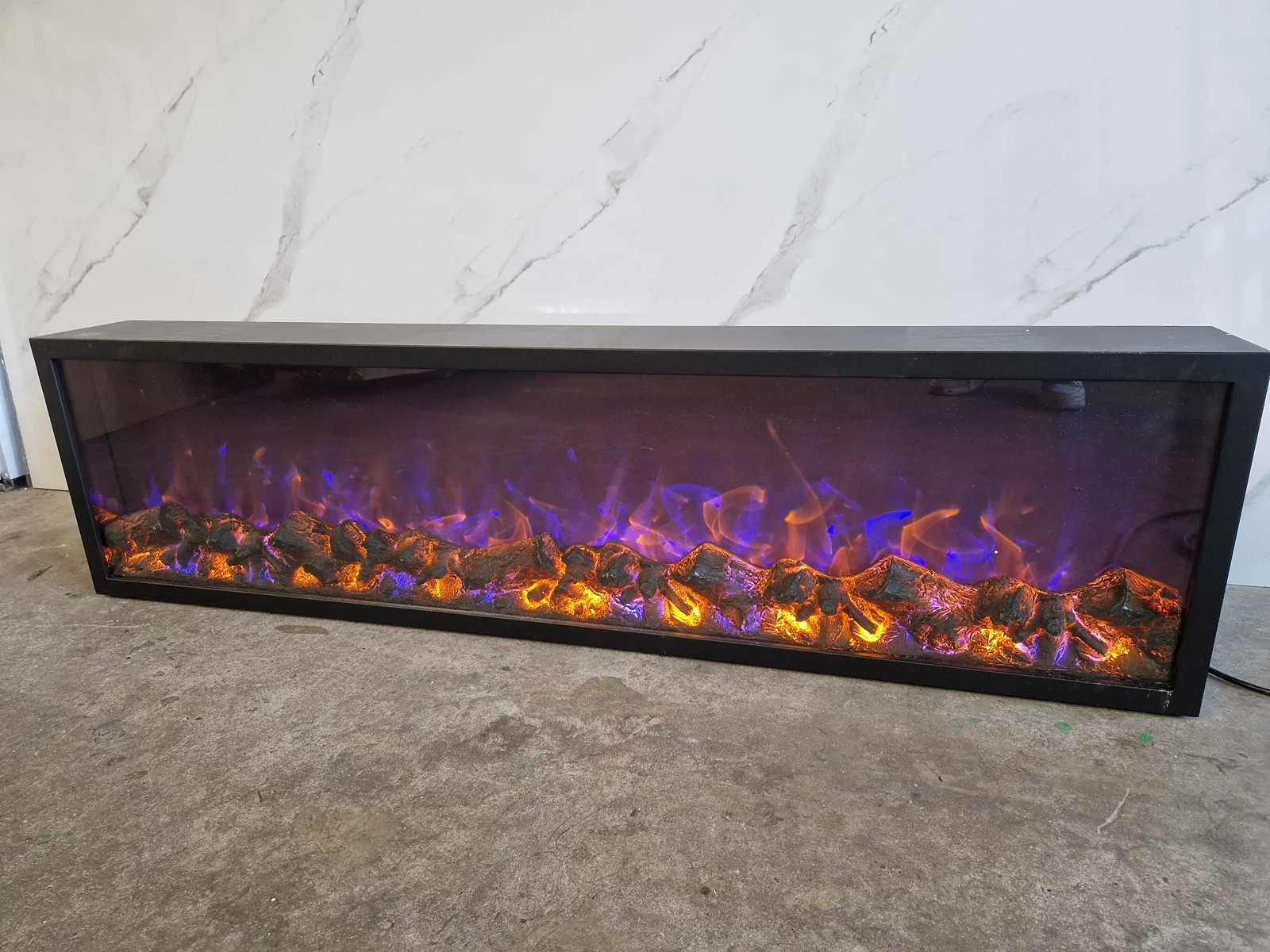 Inbouw Sfeerhaard, type: montreal, met afstandbediening,helder en gehard glas, houtblokken, diversen haard standen (helderheid en snelheid), afkomstig uit faillissement, Brandstof: elektrisch Kleur: zwart Lengte: 152 Breedte: 18 Hoogte: 40