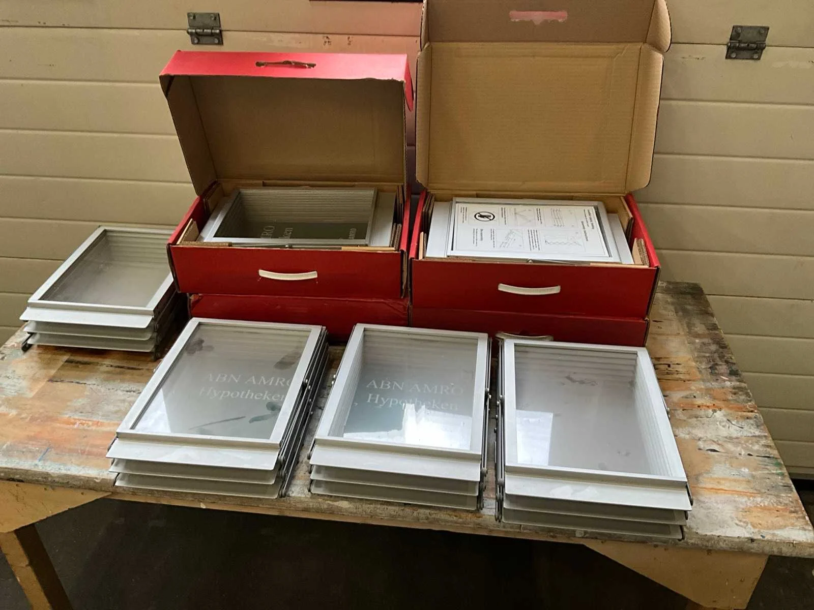 8 x folderrek opvouwbaar, 1 malig gebruikt op beurs