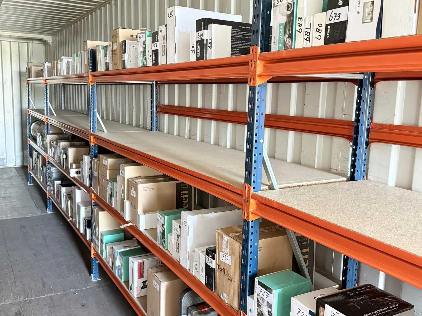 Ongebruikt, gedemonteerd 5 staanders 2000x500mm / 32 liggers 2700mm + 16 legborden Totale lengte = 11050mm lang. Word kant en klaar als pakket meegegeven. Te laden met eventueel heftruck. (zonder inhoud van de stelling) Merk: Mecalux Aantal staanders: 5 Aantal legborden: 16 Demontabel: true Lengte: 1105cm Breedte: 50cm Hoogte: 200cm