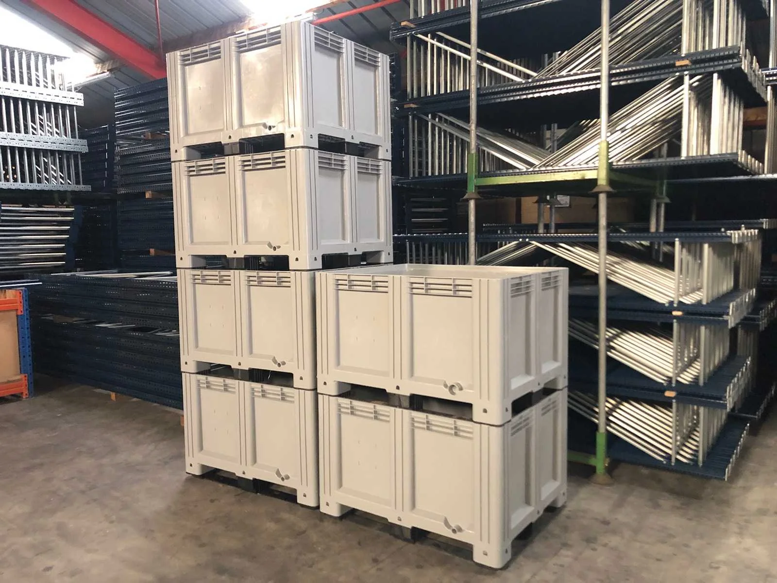 Stapelbak 120 x 100 x 76,5 cm ( LxBxH ) Ongebruikt incl sleden Nog nooit in gebruik geweest. Stapelbaar Prijs gaat is voor 1 stuks. Extra nalevering mogelijk in overleg bij afhalen tegen meerprijs. Laatste 3 foto's zijn als voorbeeld voor stapelen.