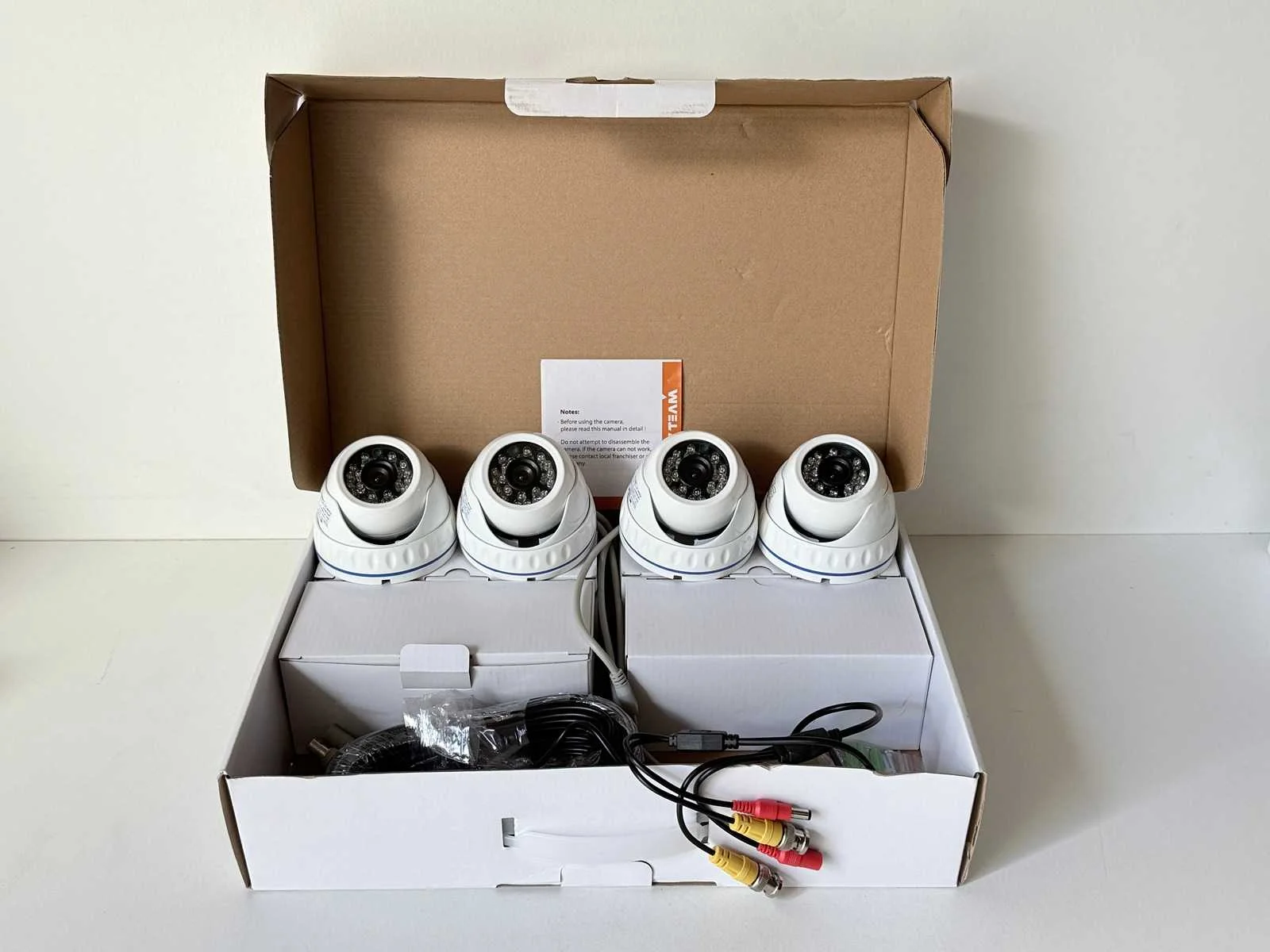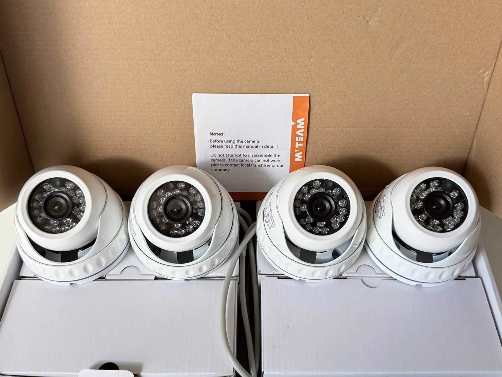 Set van 4 camera's. Ongebruikt. + 4x bedrading voor aansluiten. 20m IR Distance Lens 6mm 1024 P 1.3MP