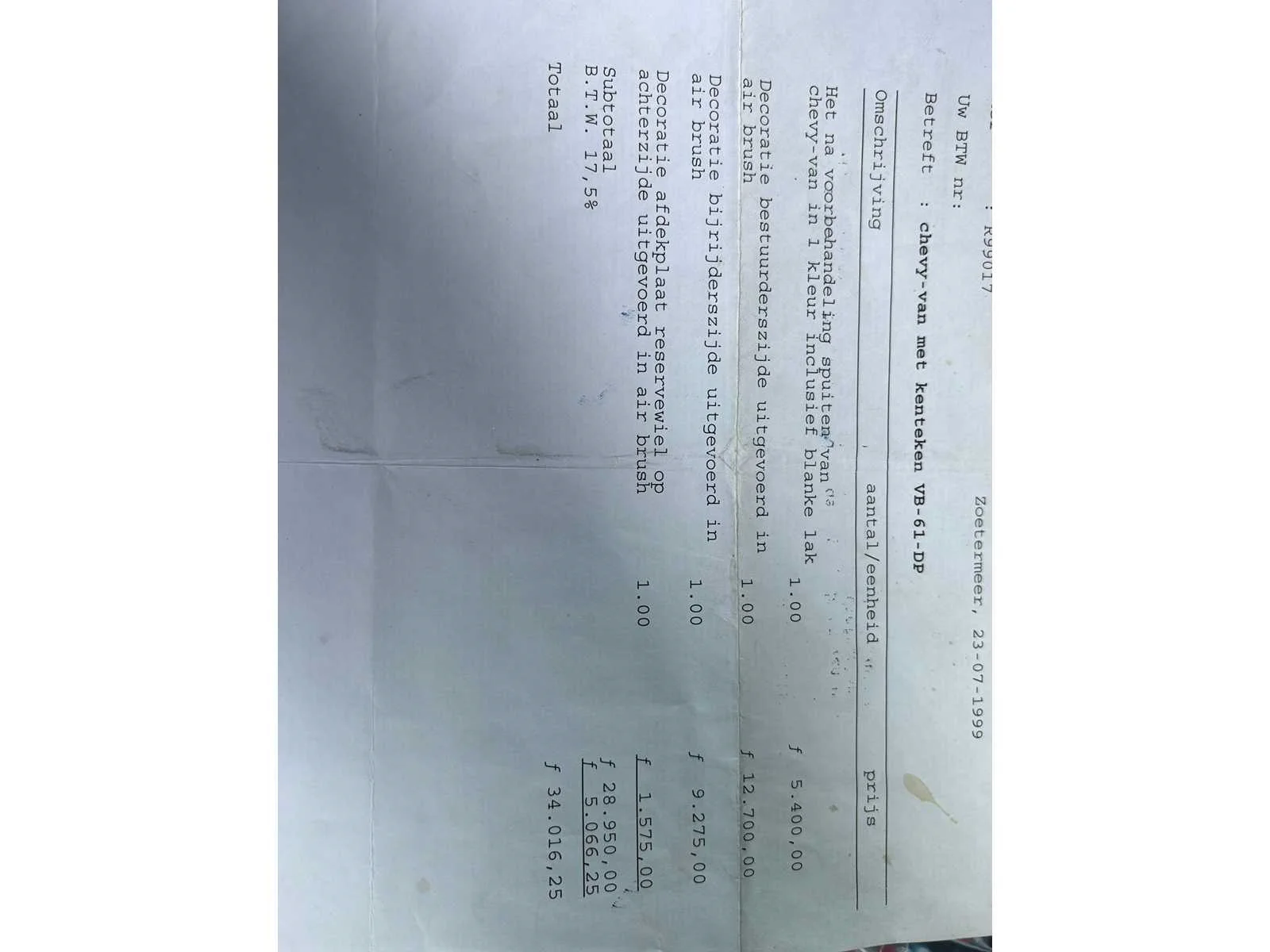 Kenteken: VB-61-DP Merk: chevrolet Model: Chevy VAN 20 Handelsbenaming: CHEVY VAN 20 Bruto BPM (NL): 8416€ Transmissie: Automaat Datum eerste toelating (NL): 1988-06-02 Datum eerste toelating: 1988-06-02 APK vervaldatum: 2026-08-14 Bouwjaar: 1988 Afgelezen kilometerstand: 295759km NAP status: Logisch Vermogen (kW): 157kW Vermogen (pk): 213hp Cilinderinhoud: 5735cc Emissieklasse: 0 Brandstof: benzine/lpg Kleur: niet van toepassing Carrosserie: kampeerwagen Ledig gewicht: 2440