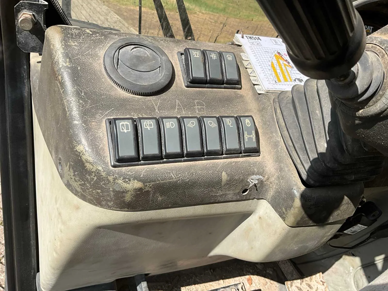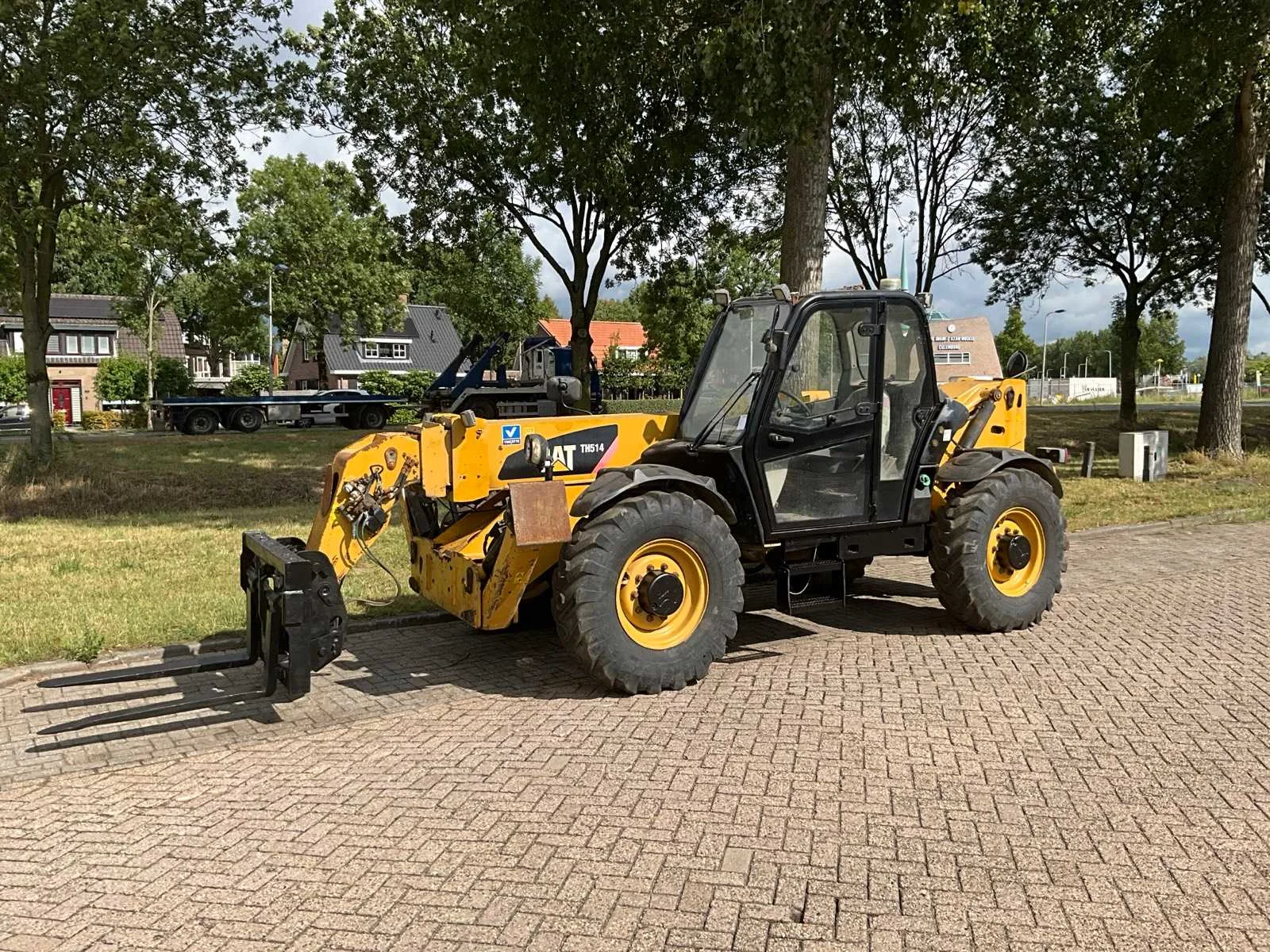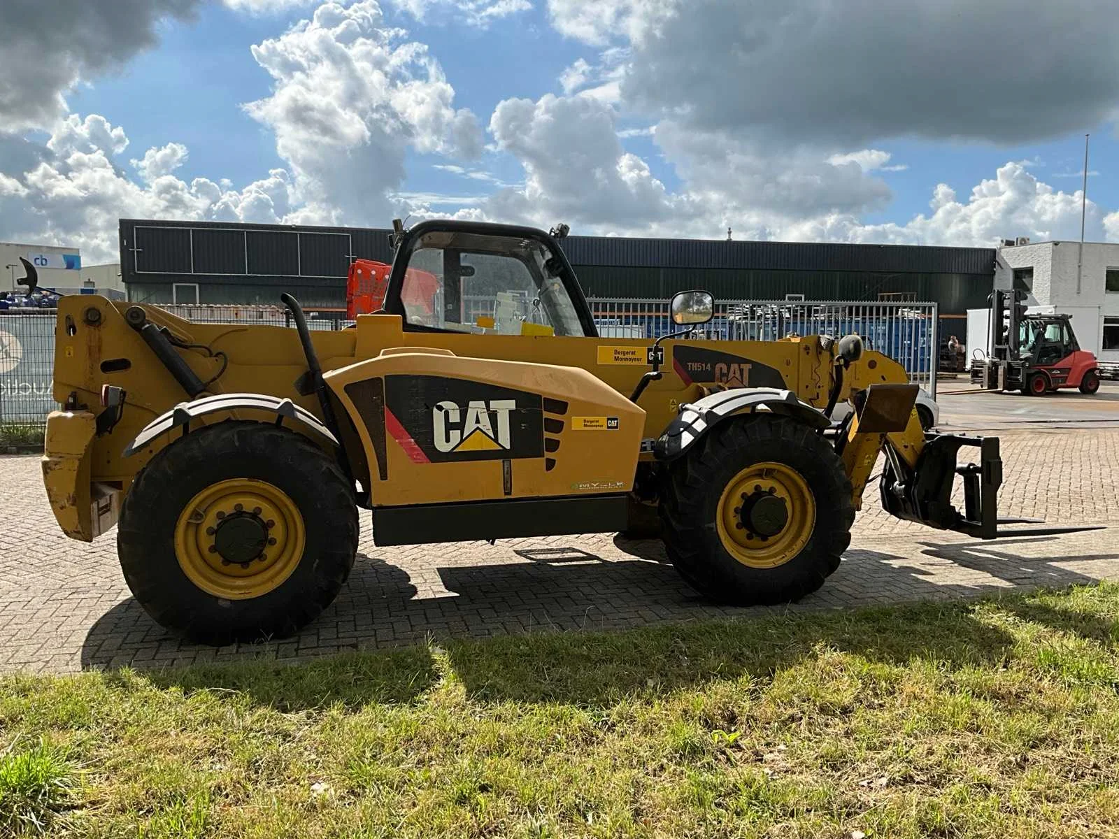 V.v. hydraulische snelwissel; extra hydraulische functie; 2 x hydraulische stempelpoten; storing; 4x4x4 besturing; gesloten cabine Merk: Caterpillar Type: TH 514 Bouwjaar: 2010 Hefvermogen: 5000kg Hefhoogte: 13700mm Cabine: true Vierwielaandrijving 4x4: true Lepellengte: 1200mm Afgelezen urenstand: 2318 Eigen gewicht: 10760kg Totale afmeting L: 6520mm Totale afmeting Breedte: 2440mm Totale afmeting Hoogte: 2630mm