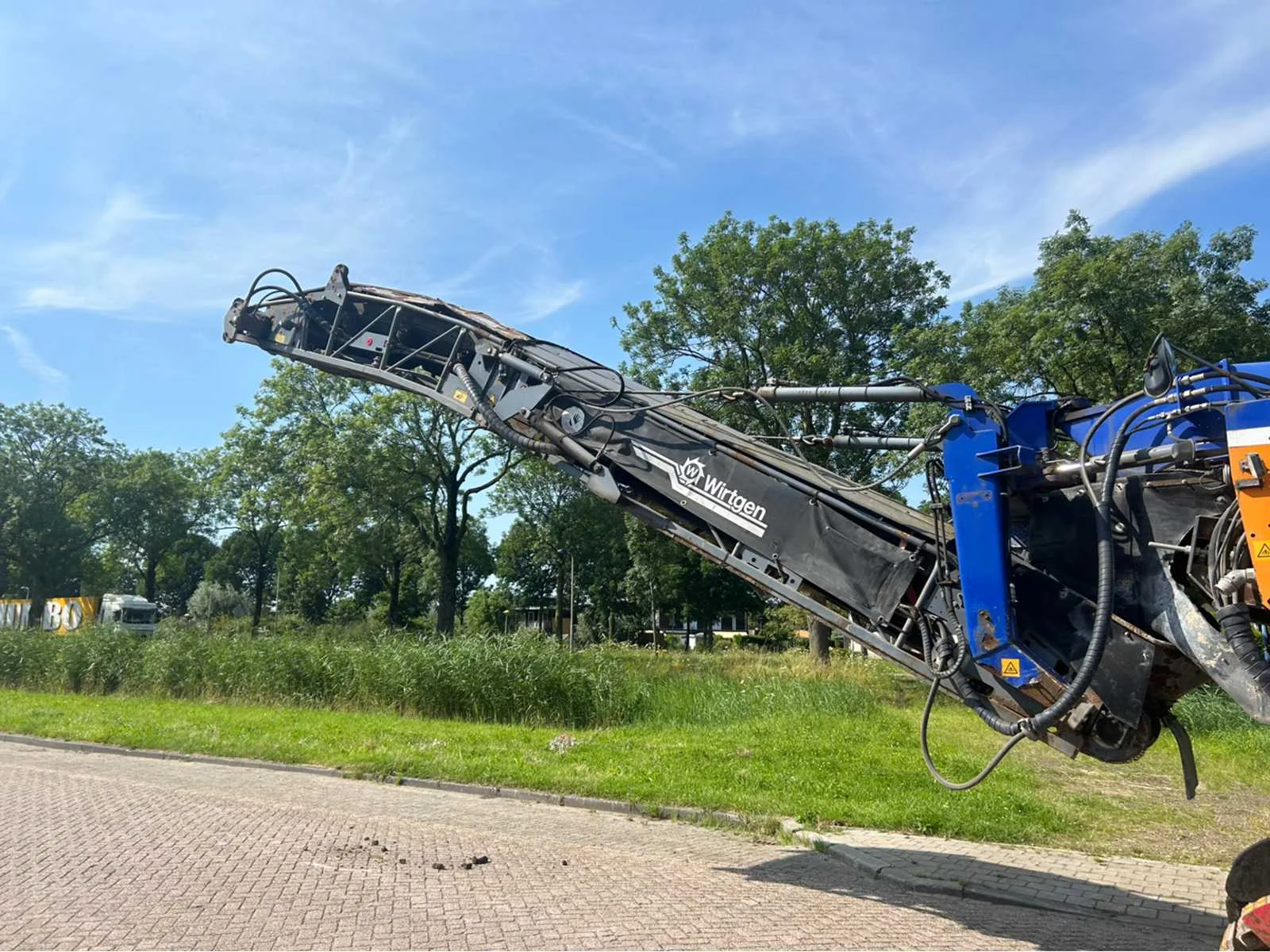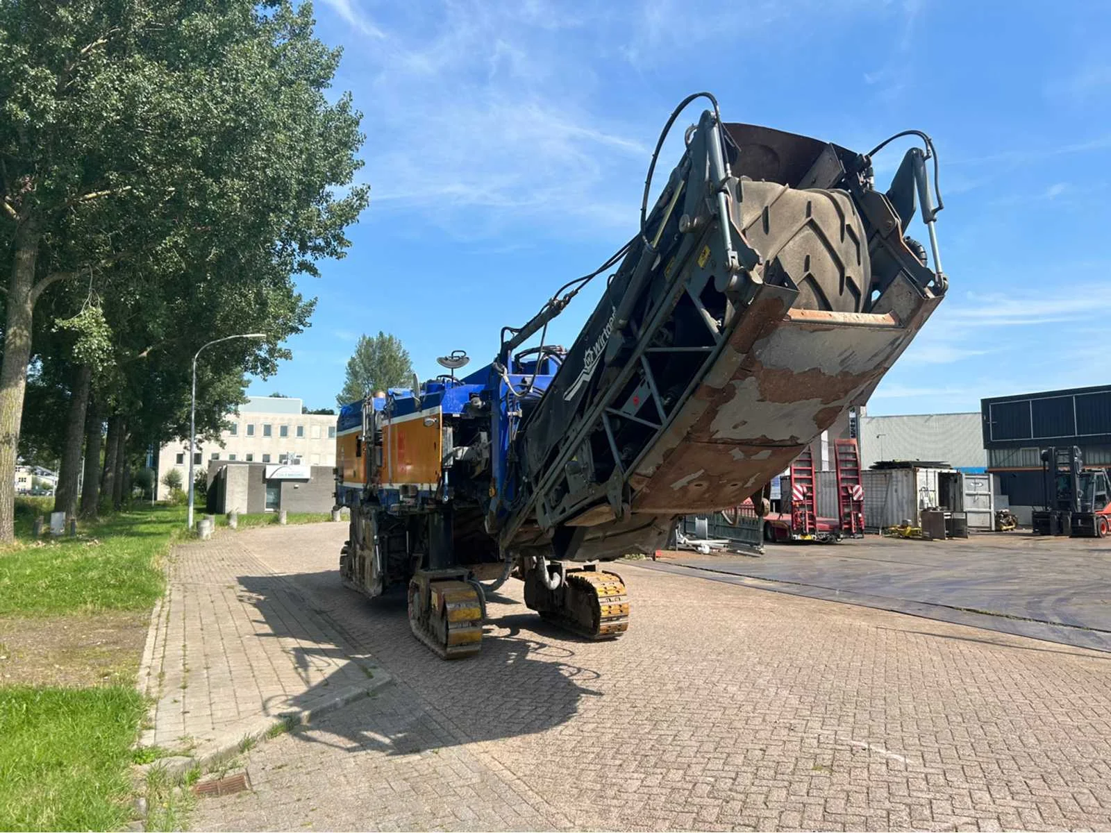 Merk: Wirtgen Type: W2200 Freesbreedte: 2200mm Freesdiepte: 350mm Merk motor: Caterpillar Motorvermogen (kW): 671kW Afgelezen urenstand: 10335 Eigen gewicht: 43700kg Totale afmeting L: 9700mm Totale afmeting Breedte: 2800mm Totale afmeting Hoogte: 3250mm