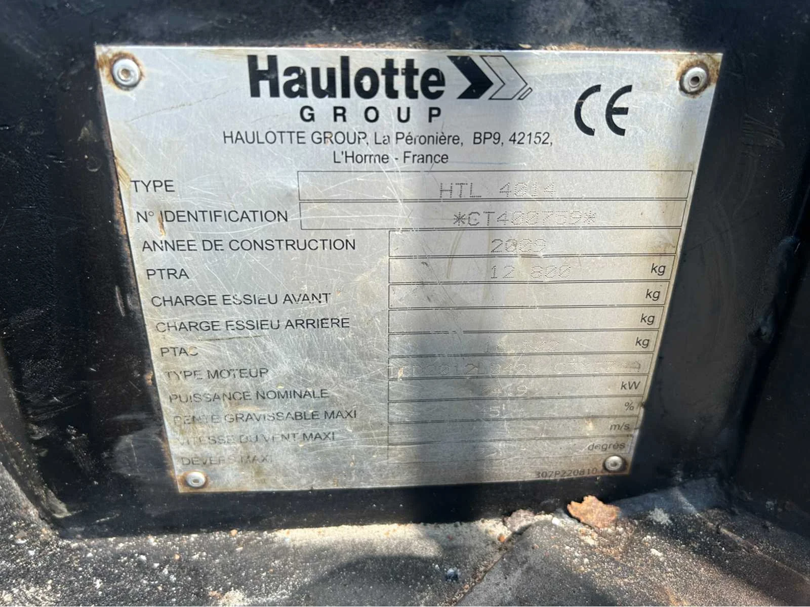 V.v. snelwissel; 2 x hydraulische stempelpoten; 4x4x4 besturing; Merk: Haulotte Type: HTL 4014 Bouwjaar: 2009 Motorvermogen (kW): 74.9kW Hefvermogen: 4000kg Hefhoogte: 13600mm Cabine: true Vierwielaandrijving 4x4: true Lepellengte: 1200mm Luchtbanden: true Afgelezen urenstand: 5713 Totale afmeting L: 6460mm Totale afmeting Breedte: 2430mm Totale afmeting Hoogte: 2600mm