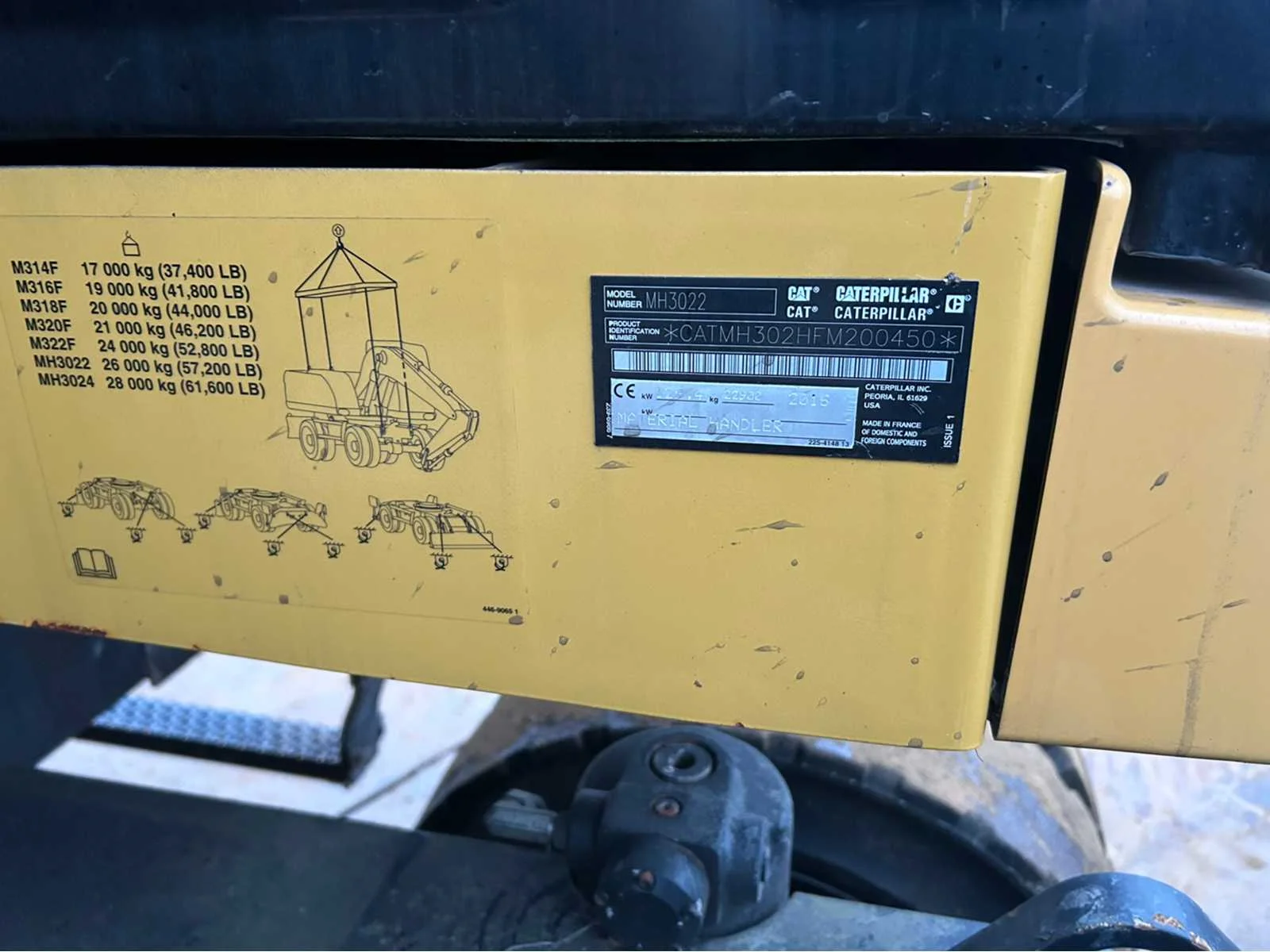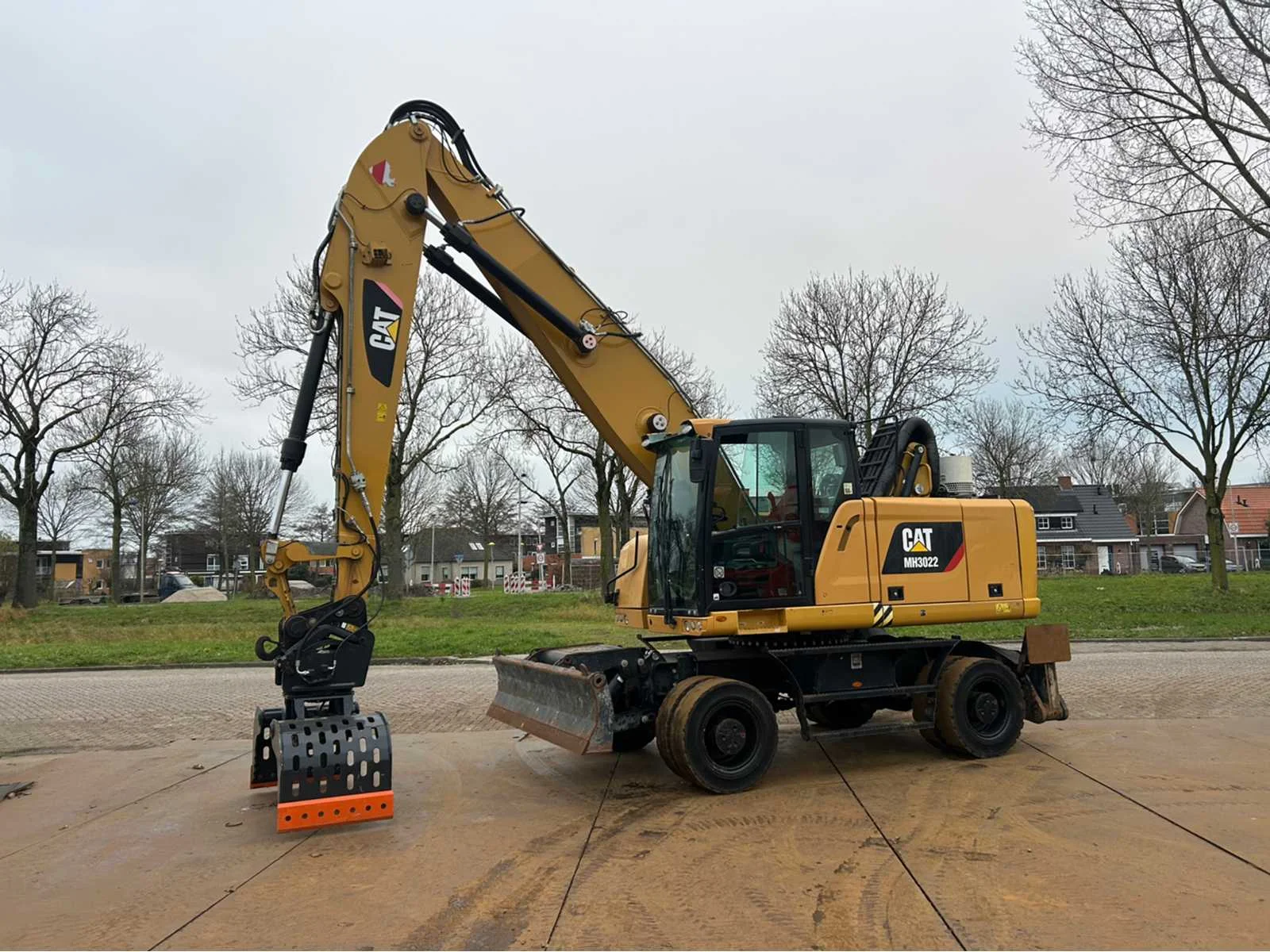 V.v. 2 x hydraulische stempelpoten; dozerblad; hefbare cabine; snelwissel; sloop/sorteer functie; roterende sorteergrijper; Merk: Caterpillar Type: MH3022 Bouwjaar: 2016 Kenteken: TVD-86-B Eigen gewicht: 22670kg Aantal assen: 2 Aantal cilinders: 4 Merk motor: Caterpillar Afgelezen urenstand: 13550hr Motorvermogen (kW): 126kW