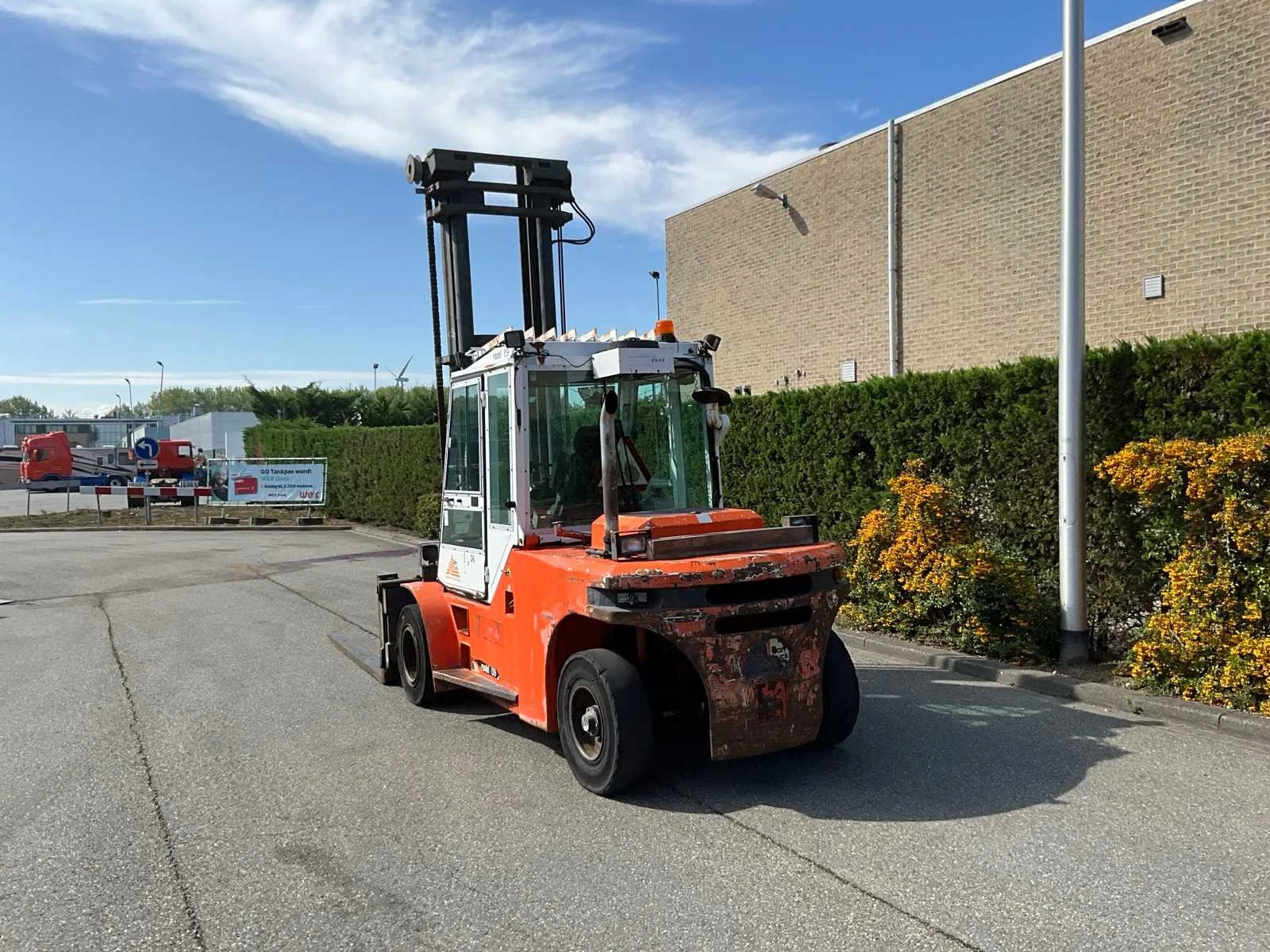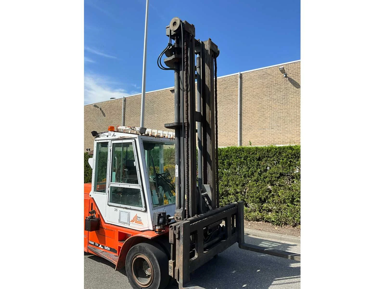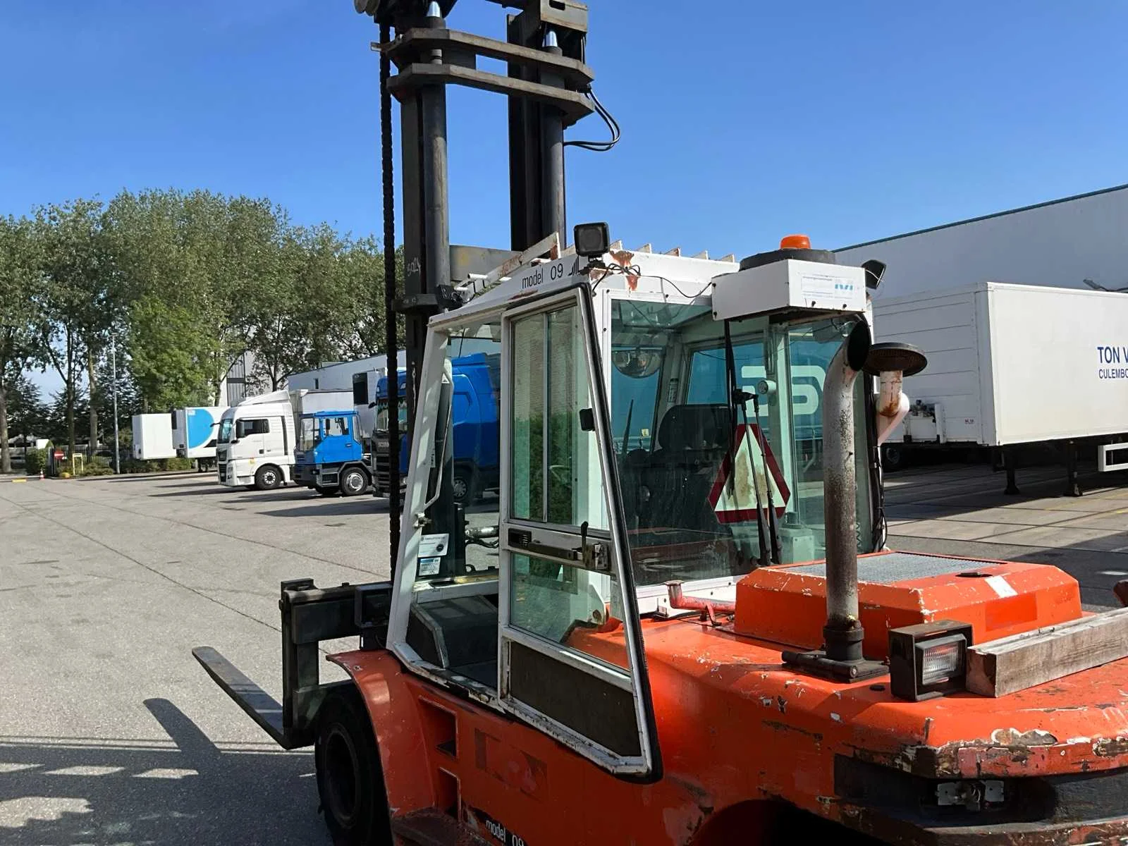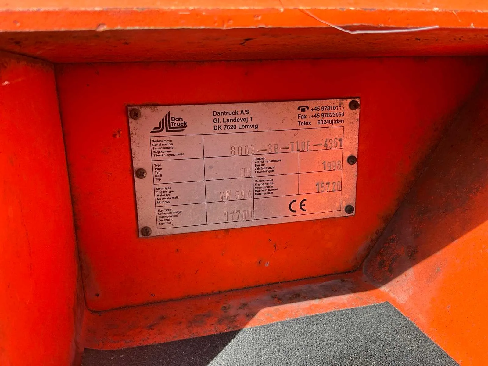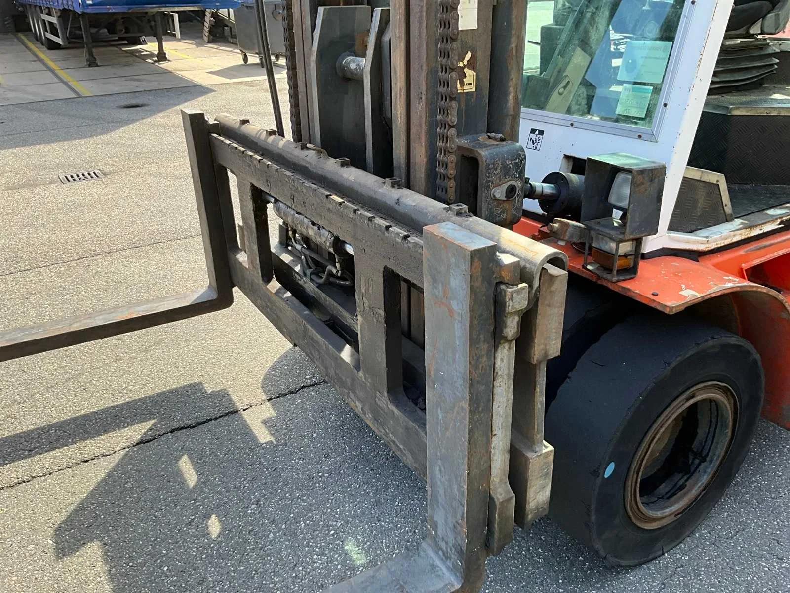 Urenstand loopt nog op; v.v. werkverlichting; gesloten cabine; de lange lepels gaan eraf, er zit een setje 1600 mm vorken bij! Merk: Dantruck Type: 09 Turbo Brandstof: Diesel Mast: Duplex Soort band: Volrubber banden Aantal wielen: 4 Afgelezen urenstand: 8508 Side-shift: true Duplex mast: true Eigen gewicht: 11700kg Hefvermogen: 8000kg Lepellengte: 1600mm Hefhoogte: 6190mm Vol rubber banden: true Minimale doorrijhoogte: 4000mm Totale afmeting L: 5600mm Totale afmeting Breedte: 1980mm Totale afmeting Hoogte: 4000mm Diesel: true