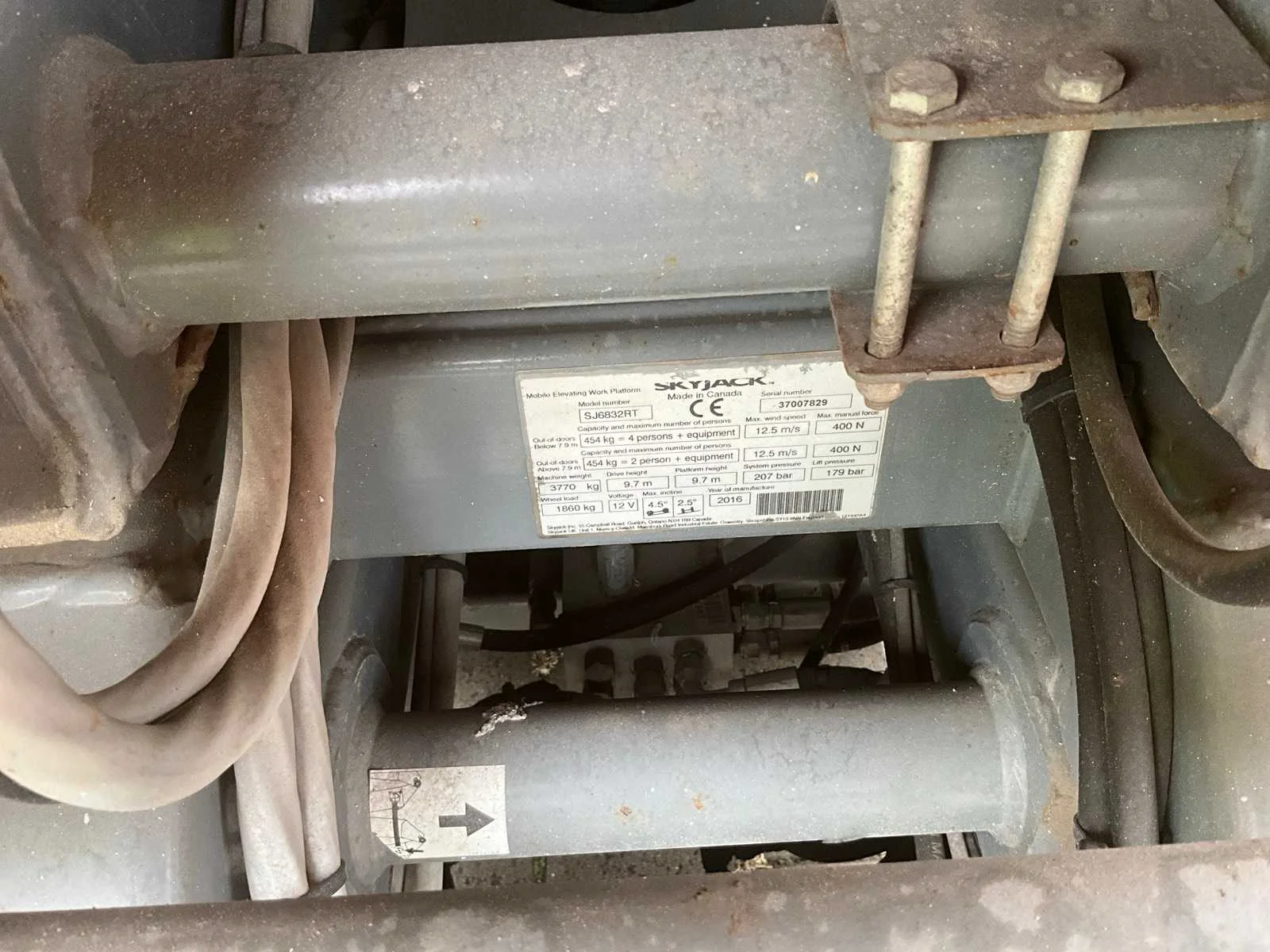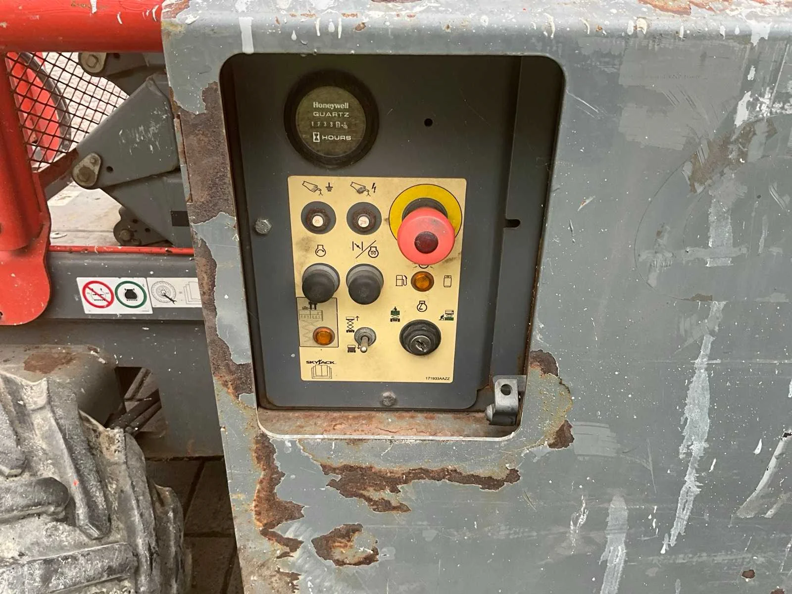 Motor loopt, verdere functies niet getest; v.v. hydraulische stempelpoten; uitschuifbaar plateau; 4x4 aandrijving Merk: Skyjack Type: SJ6832RT Bouwjaar: 2016 Diesel: true Schaarhoogwerker: true Werkhoogte: 11750mm Plateau afm. l: 2440mm Plateau afm. b: 1420mm Platform capaciteit: 454kg Afgelezen urenstand: 1733 Eigen gewicht: 3770kg Totale afmeting L: 3350mm Totale afmeting Breedte: 1760mm Totale afmeting Hoogte: 2510mm