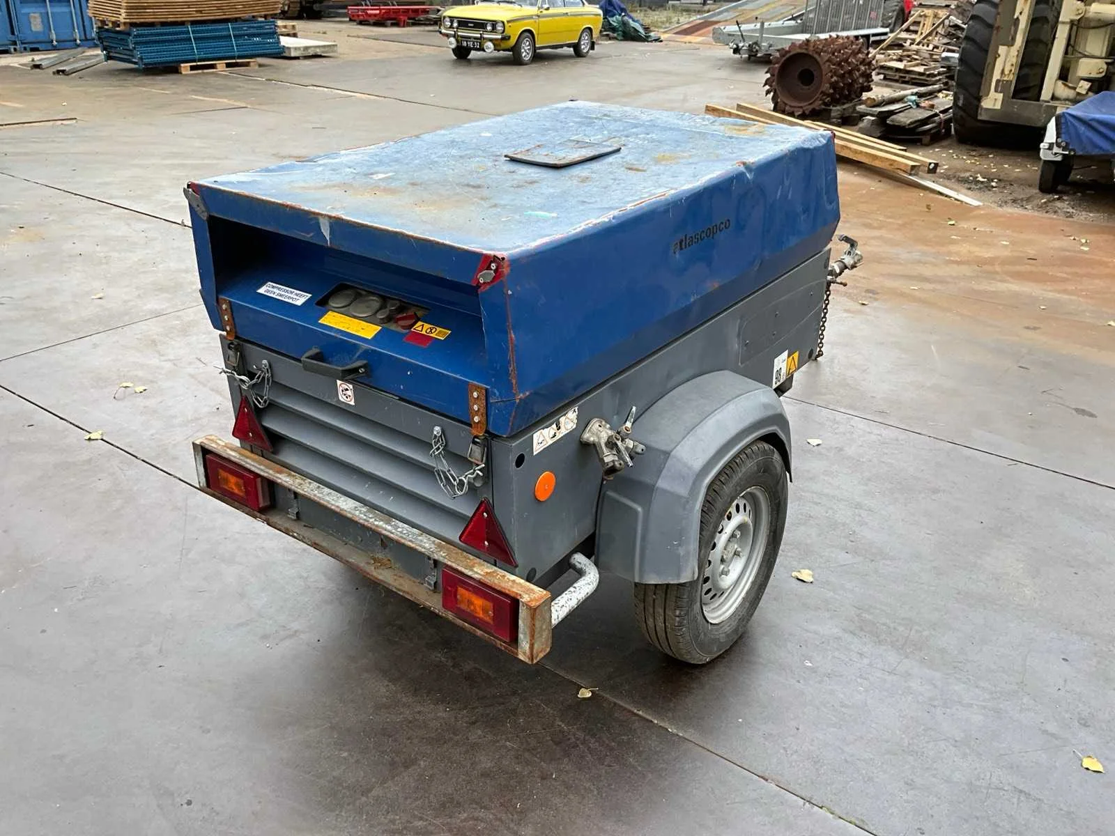 V.v. Kubota dieselmotor; verstelbare dissel Merk: Atlas copco Type: XAS 37KD Capaciteit.: 7bar Vermogen: 18.5kW Afgelezen urenstand: 3983hr Totale afmeting L: 3200mm Totale afmeting Breedte: 1250mm Totale afmeting Hoogte: 1250mm