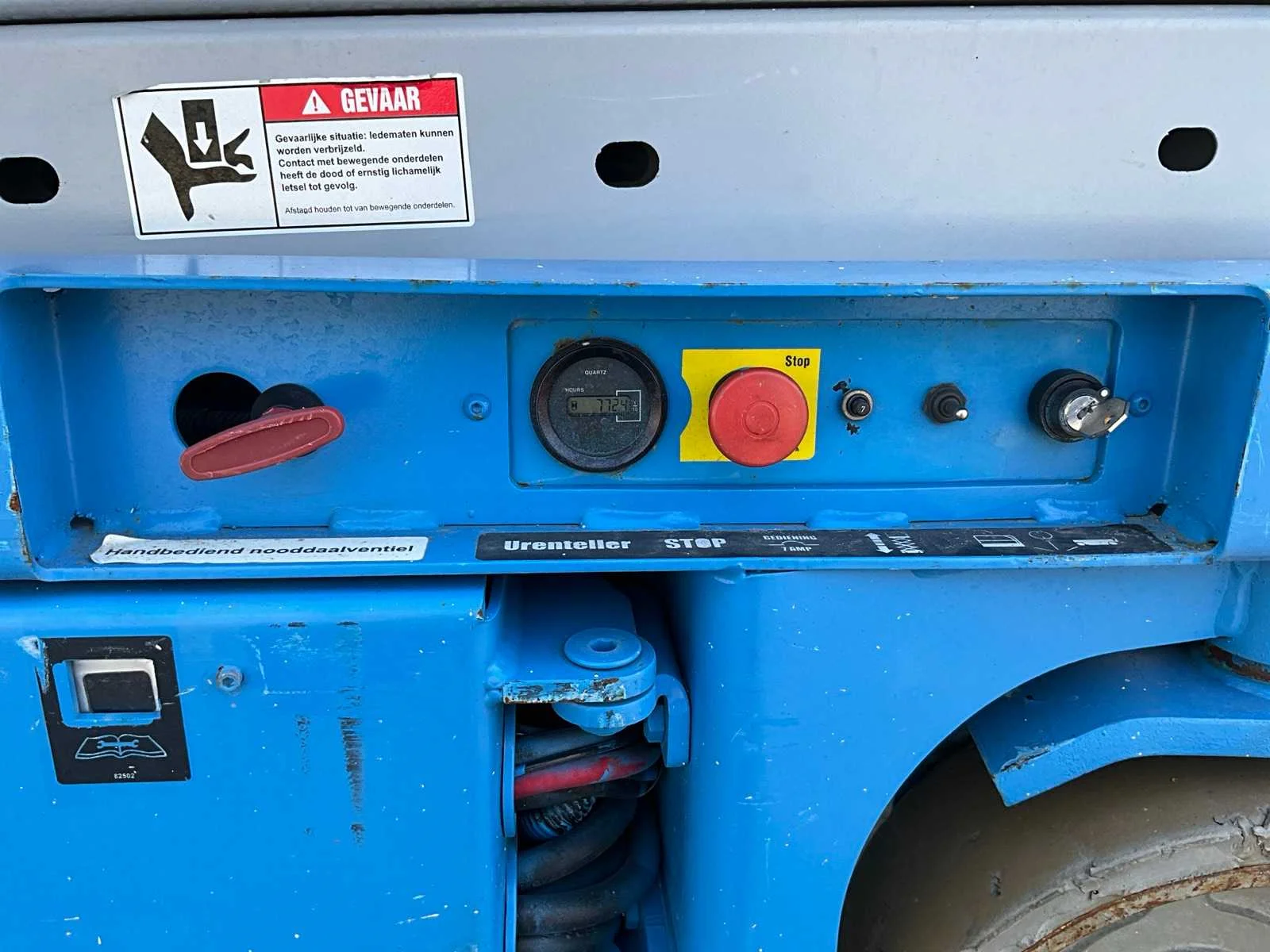 V.v. non marking banden; ingebouwde 24 Volt acculader ; uitschuifbaar plateau Merk: Genie Type: GS-2032 Elektrisch: true Schaarhoogwerker: true Werkhoogte: 7900mm Plateau afm. l: 2170mm Plateau afm. b: 700mm Platform capaciteit: 363kg Accu lader: true Afgelezen urenstand: 772 Eigen gewicht: 1550kg Totale afmeting L: 2450mm Totale afmeting Breedte: 820mm Totale afmeting Hoogte: 2100mm
