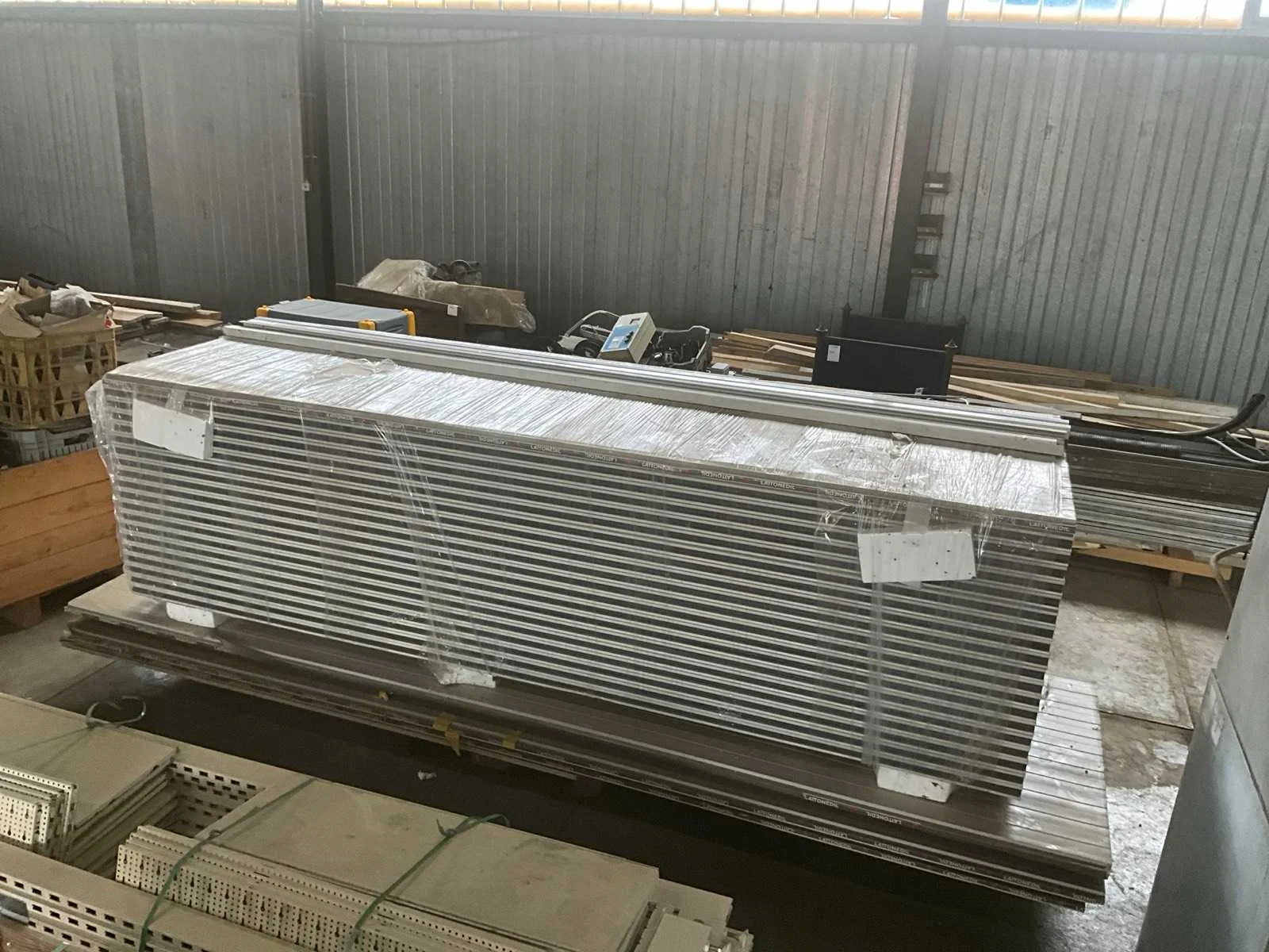 Pakket bovenste deel: 20 stuks van 40x1000x3000 mm; onderste pakket 4 stuks 40x1000x3500 mm Merk: Lattonedil Model: 40MM