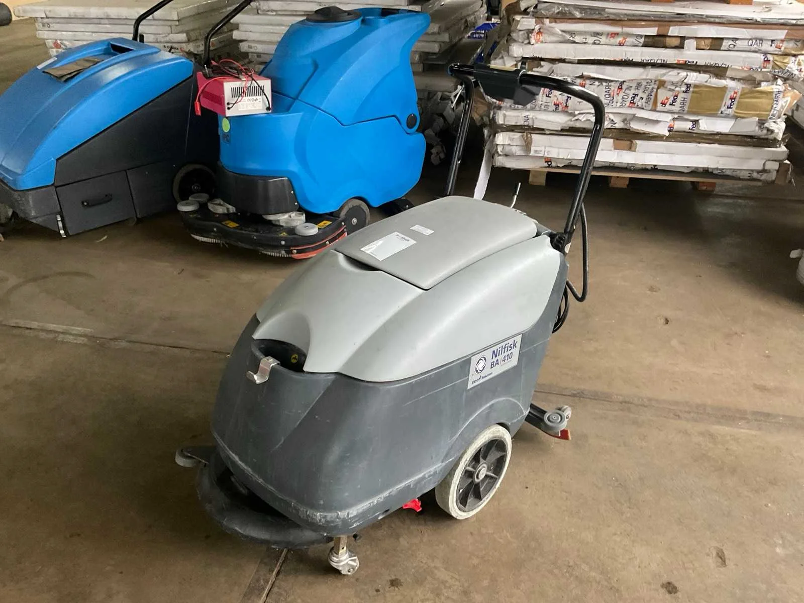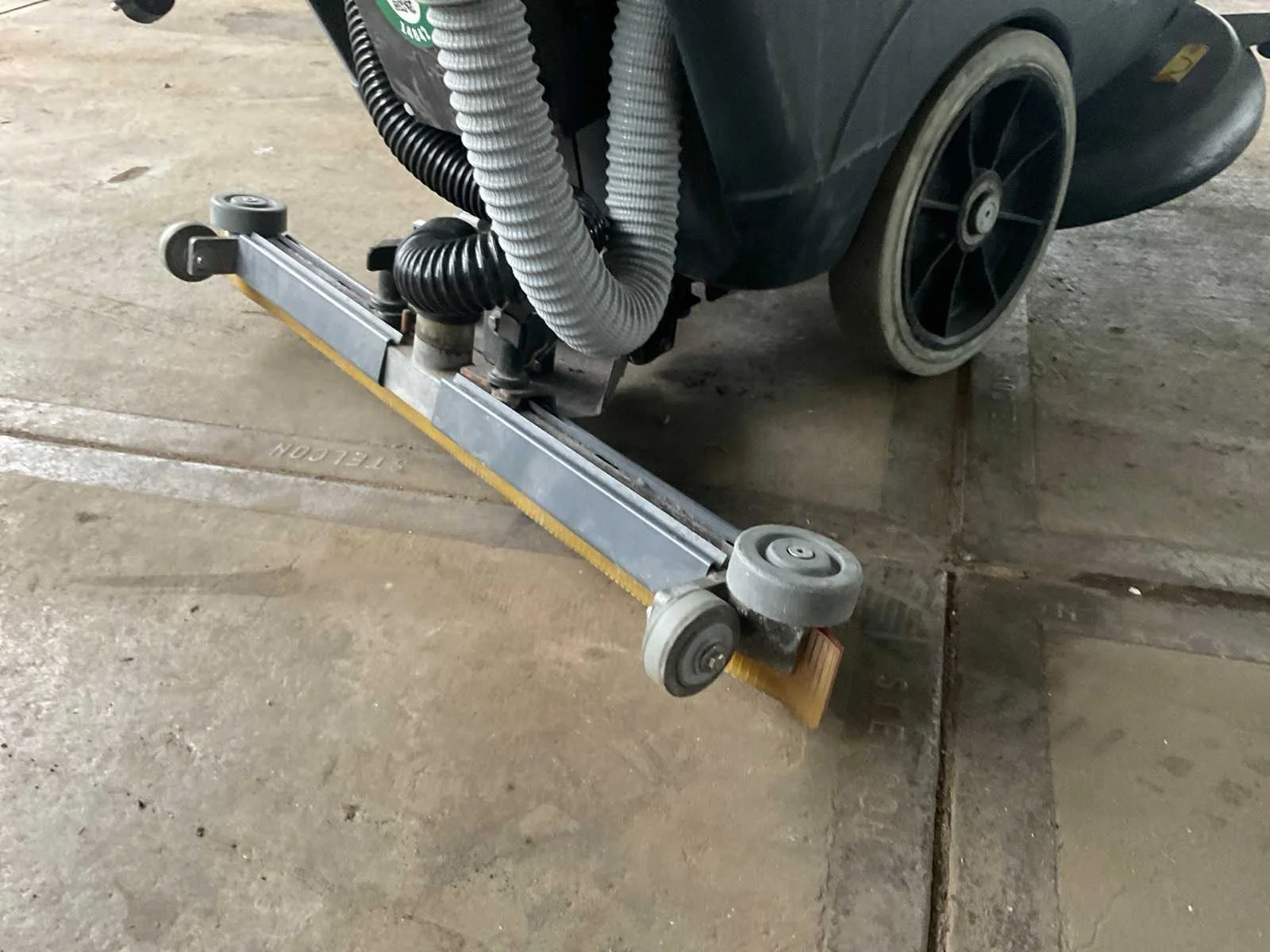 Zonder borstel. Merk: Nilfisk Type: BA410 Bouwjaar: 2006 Serienummer: 064223038 Werkbreedte: 400mm Eigen gewicht: 62kg Totale afmeting L: 1000mm Totale afmeting Breedte: 600mm Totale afmeting Hoogte: 1000mm