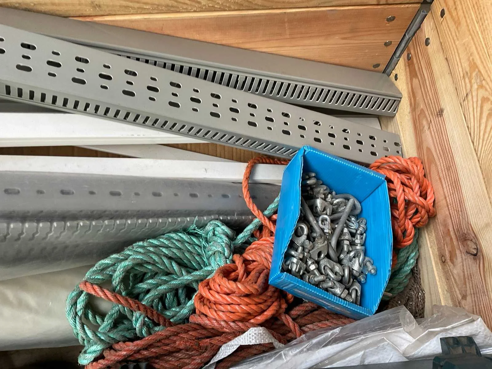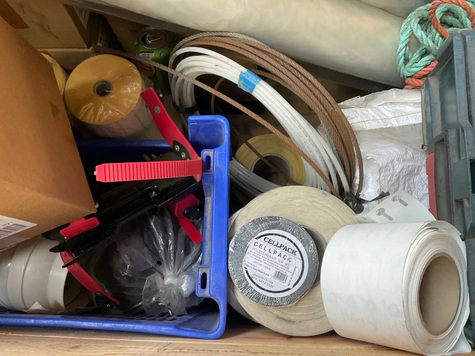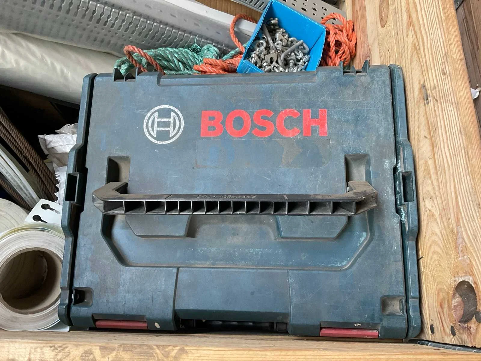 Bestaande uit onder andere: kabelgoten, afdekkapjes, rollen met printstickers, touw, kabel, lege koffer van Bosch.