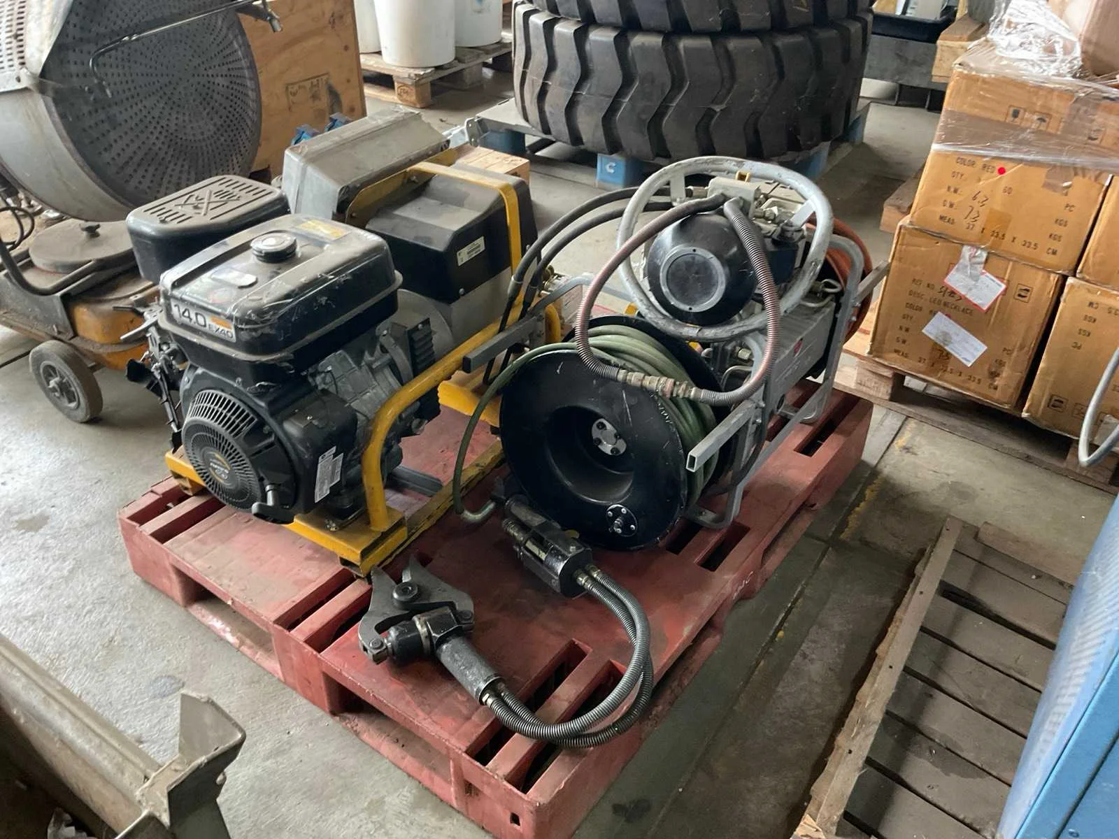 Bestaande uit: benzine generator, hydraulick pomp, hydraulick slangen, 2x spreider