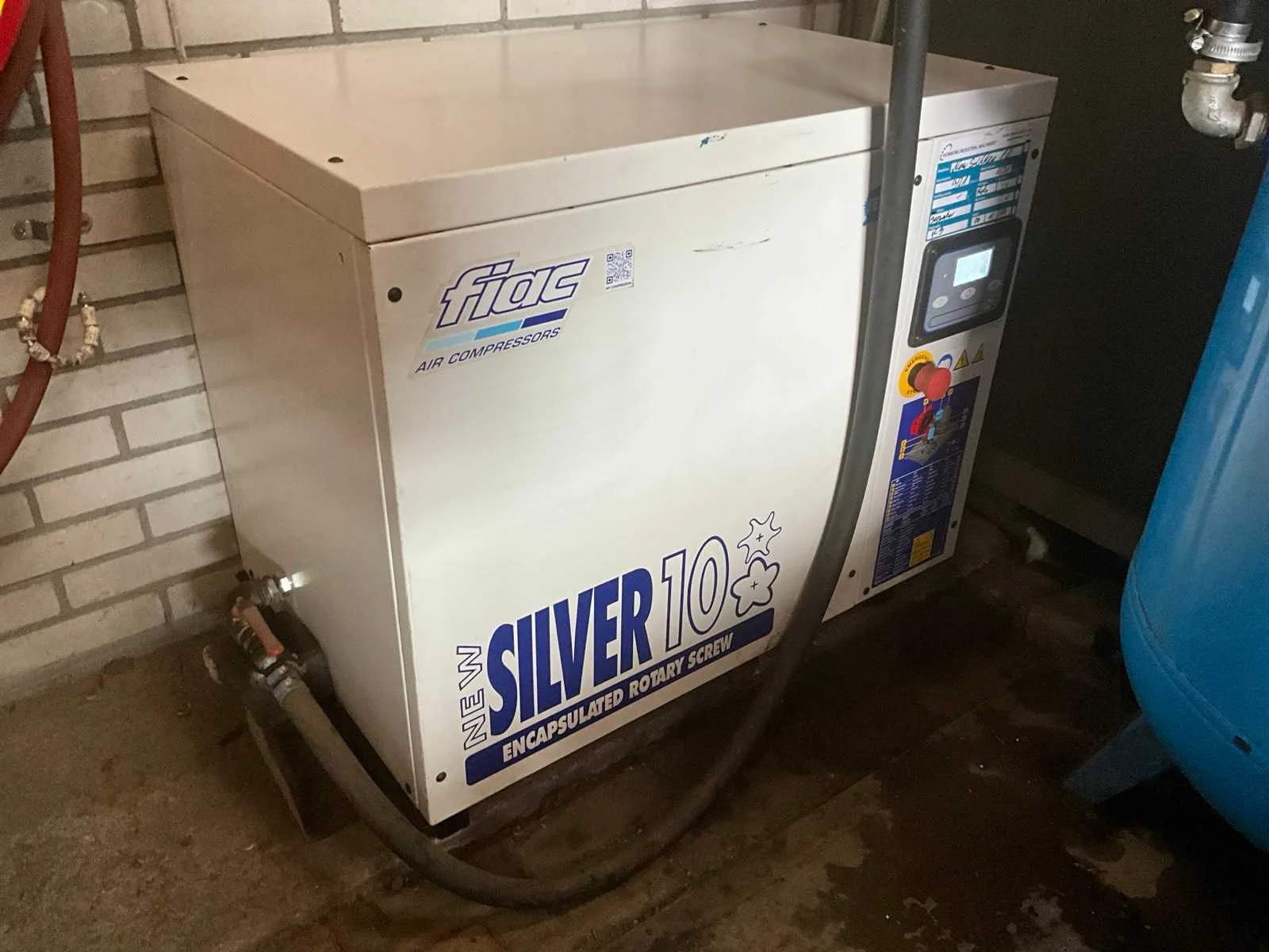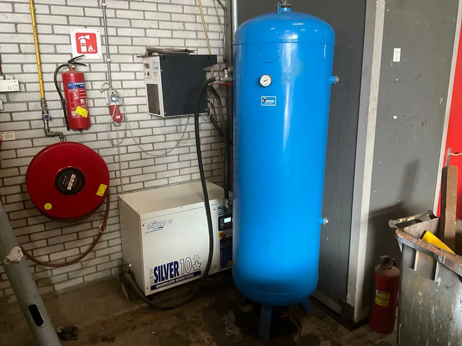 Incl. Buffervat van 500 liter, Fiac luchtdroger (230Volt) Merk: Fiac Type: Silver 10 Bouwjaar: 2023 Capaciteit.: 10bar Luchtstroom: 860l/min Vermogen: 7.5kW Luchtdroger: true Aansluiting: 400V Totale afmeting L: 890mm Totale afmeting Breedte: 640mm Totale afmeting Hoogte: 750mm