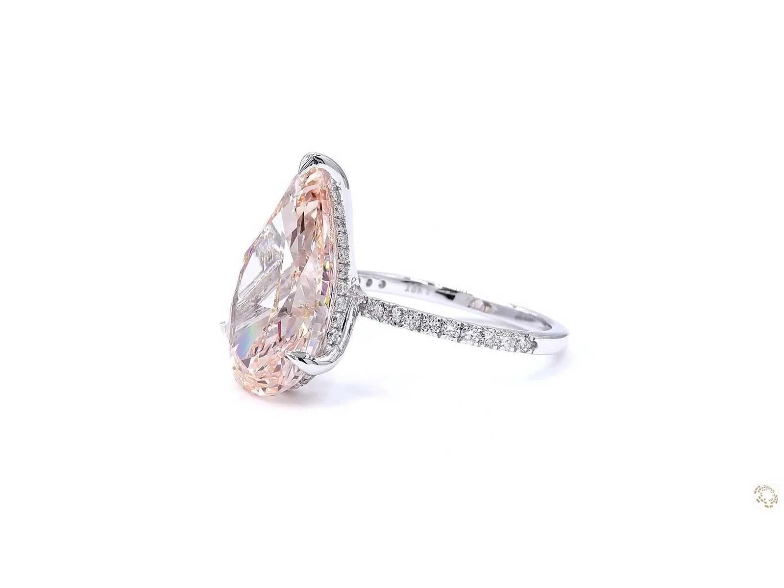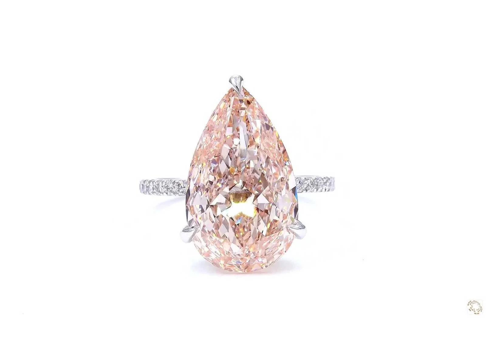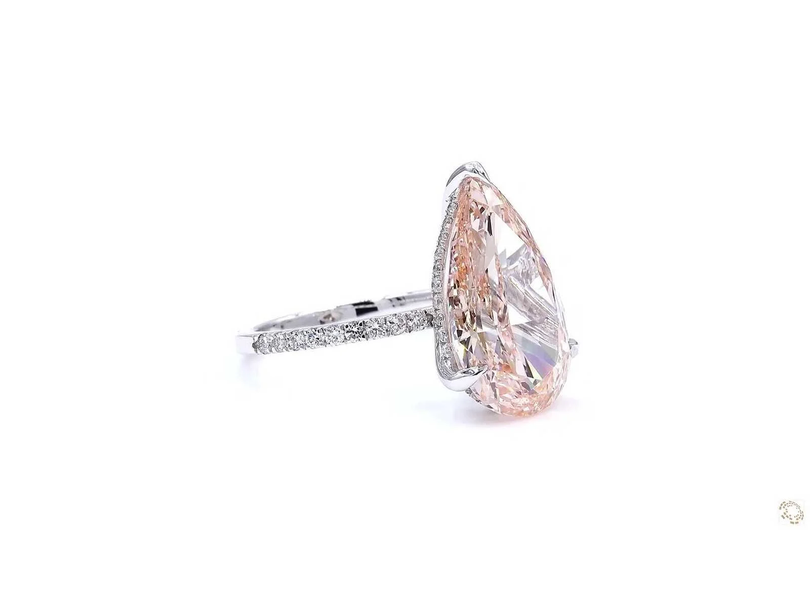 Exclusieve 18K witgouden ring Ringmaat - 54 EU / 14 IT / 6,75 US Rapportnummer IGI: LG701502349 Vorm: Peer brilliant geslepen Karaatgewicht van de hoofsteen: 9,10 Kleur: Fancy Vivid Pink Helderheid: VVS2 Symmetrie: uitstekend Zijstenen - 0,47 (46 stuks) Totaal karaatgewicht - 9,57 Ct Totale ringgewicht: 4,79 gram Bezichtiging op afspraak Materiaal: Witgoud Ringmaat : 54 Certificaat: Ja Lage schatting: 32900€