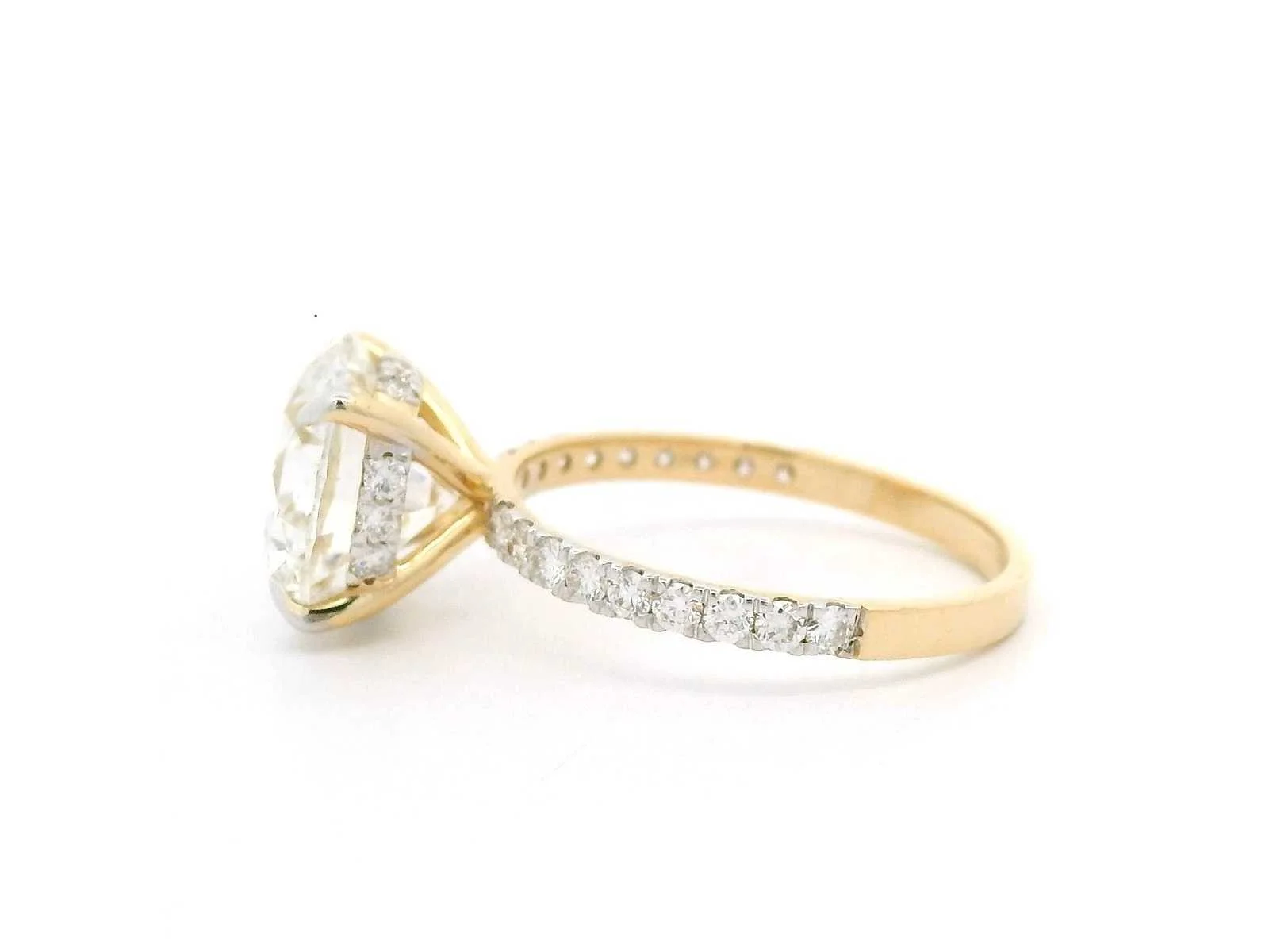 Gewicht van de hoofsteen: 4,07 CT Kleur: E Helderheid: VS1 Briljant Pools: Uitstekend Symmetrie: Uitstekend Fluorescentie: Geen Omringende stenen - 0,50 Totaal karaatgewicht - 4,57 karaat Totaal gewicht van de ring: 2.863 gram 18K Geelgouden Ring Bezichtiging op afspraak Materiaal: Geelgoud Ringmaat : 54 Certificaat: Ja Lage schatting: 9700€