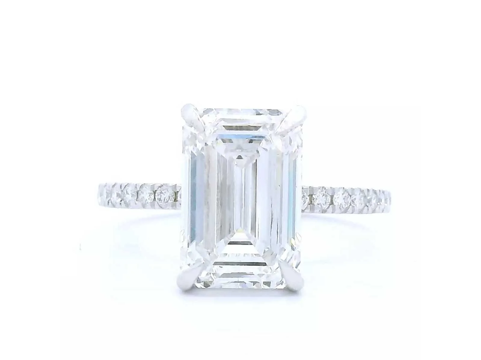 Exclusieve 18K witgouden ring Rapportnummer IGI: LG728535696 Total Carat - 4.23 Vorm: Emerald Cut Gewicht van de hoofdsteen: 4,04 CT Kleur: E Helderheid: VS1 Snede: uitstekend Symmetrie: uitstekend Omringende steen - 0,19 karaat (16 stuks) Totaal aantal karaat - 4,23 karaat Totale ringgewicht: 3,33 gram Zal worden geleverd met IGI-certificaat Bezichtiging op afspraak Materiaal: Witgoud Ringmaat : 56 Certificaat: Ja Lage schatting: 8000€
