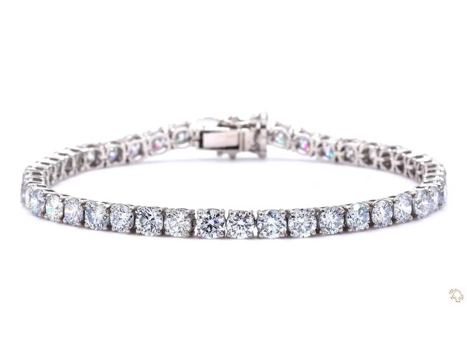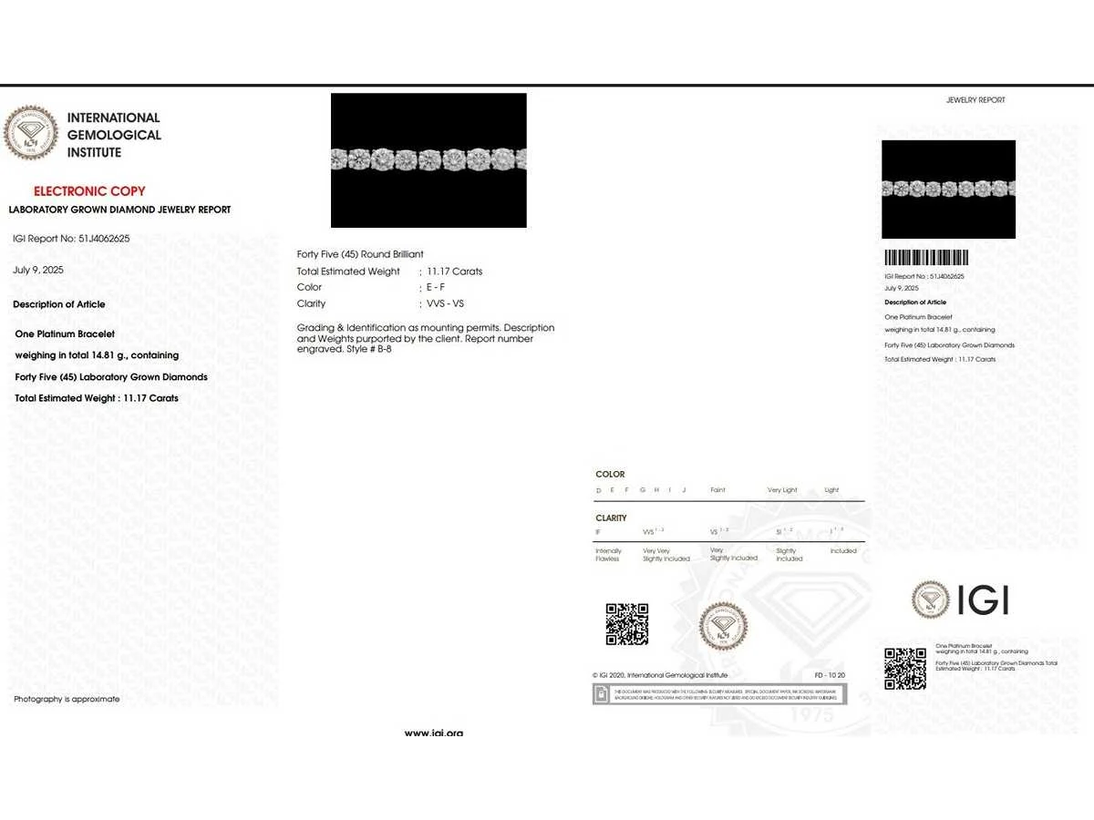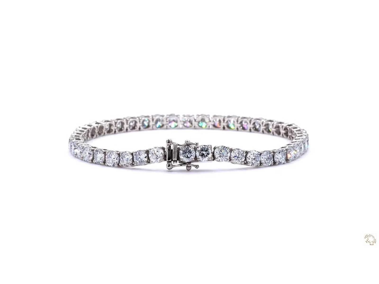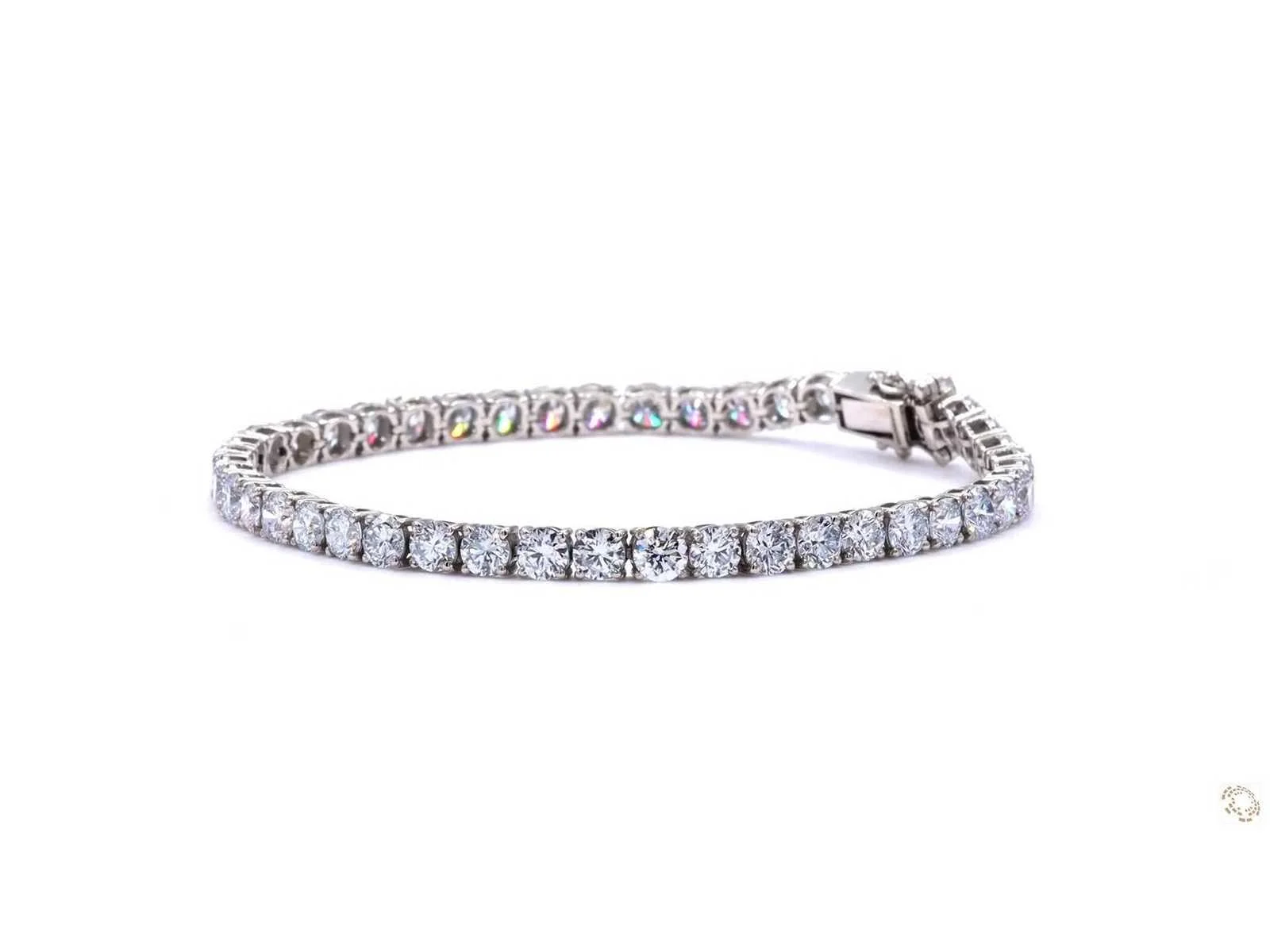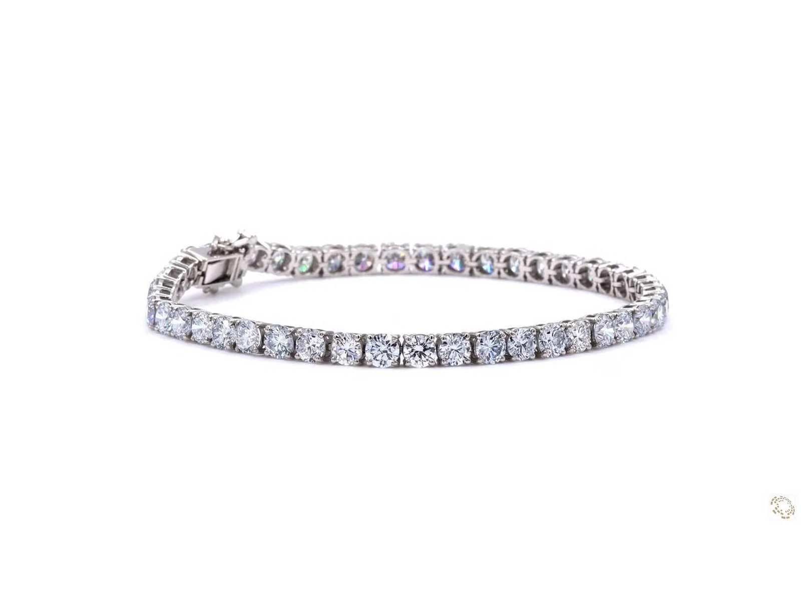 Platina 950 armband Lengte- 19 cm Karatgewicht - 11,17 Ct. Totaal gewicht - 14,81 gram Vorm - Rond met briljant snede Kleur E - F Helderheid - VVS - VS Bezichtiging op afspraak Materiaal: Platina Lengte: 19cm Certificaat: Ja Lage schatting: 11500€