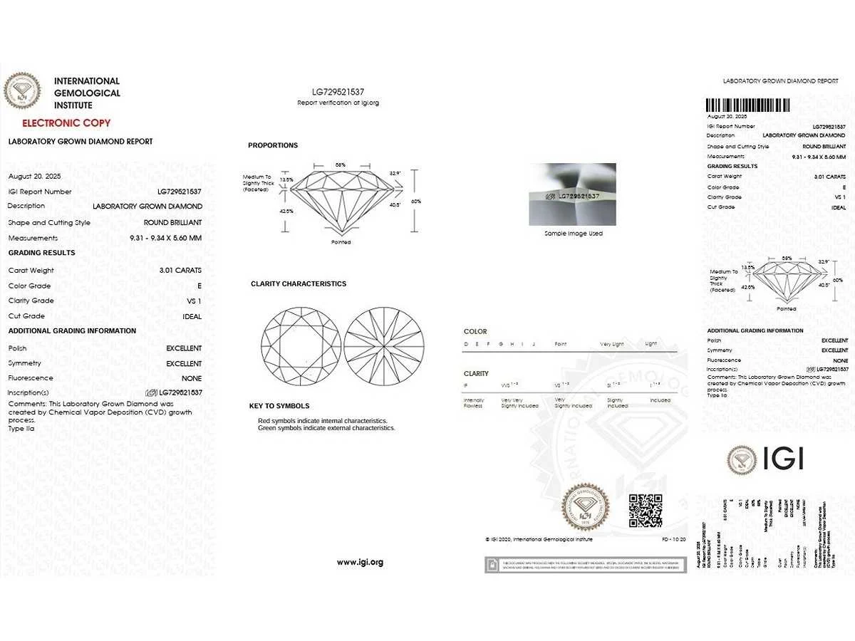 Exclusieve 18K witgouden ring Ringmaat - 54 EU / 14 IT / 6,75 US Rapportnummer IGI: LG729521537 Totaal karaatgewicht - 3,29 Vorm: Rond schitterend Gewicht van de hoofsteen: 3,01 CT Kleur: E Helderheid: VS1 Snede: uitstekend Symmetrie: uitstekend Omringende steen - 0,28 (2 stuks) Totaal gewicht van de ring: 3,14 gram Bezichtiging op afspraak Materiaal: Witgoud Ringmaat : 54 Certificaat: Ja Lage schatting: 6200€