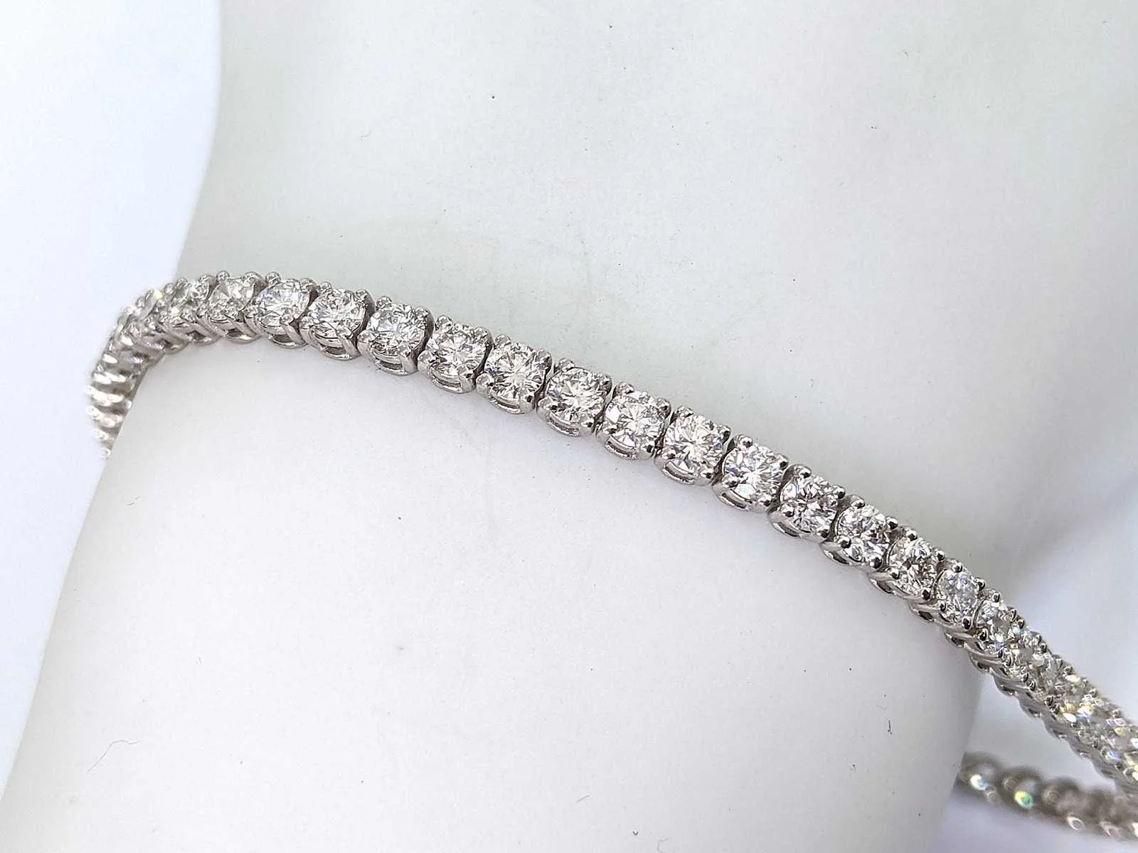 Geslepen: Rond Brilliant Carat: 5,56 cttw / 55 stenen Kleurloos (F) Duidelijkheid: VVS Grootte: 18 cm Bezichtiging op afspraak Certificaat: Ja Lage schatting: 6500€